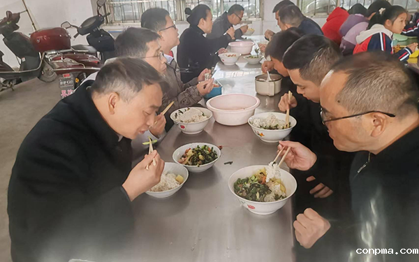 用餐时分,徐明生与师生排队取餐,共同进餐,期间他与大家亲切交谈,了解校园餐的口味与分量,鼓励师生们坦诚反馈,表达真实感受。