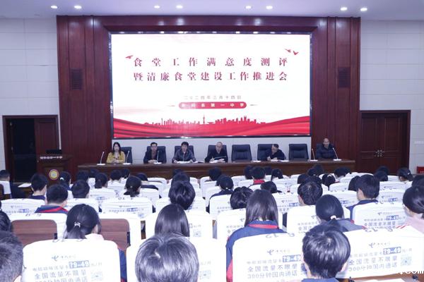 为提高师生就餐质量,提升食堂服务管理水平。3月15日晚,衡阳县一中后勤部门会同该校膳食委员会在多媒体会议室召开食堂满意度测评暨清廉食堂建设工作推进会。部分家长代表、学生代表、社区代表、后勤部门全体管理工作人员参加会议。