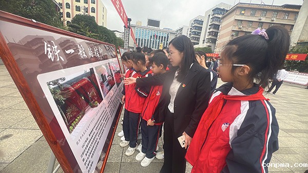 9时30分,大家跟随讲解员的讲解,参观了移动博物馆展览。大量珍贵历史图片和文献资料,生动再现了夏明翰烈士从早年投身革命事业,到积极组织工人运动、农民运动,直至被捕后坚贞不屈、英勇就义的全过程。据县文旅广体局工作人员介绍,这些展板将开展为期较长的巡展,第一站就安排到杨柳学校,让更多同学能够接受红色教育。
