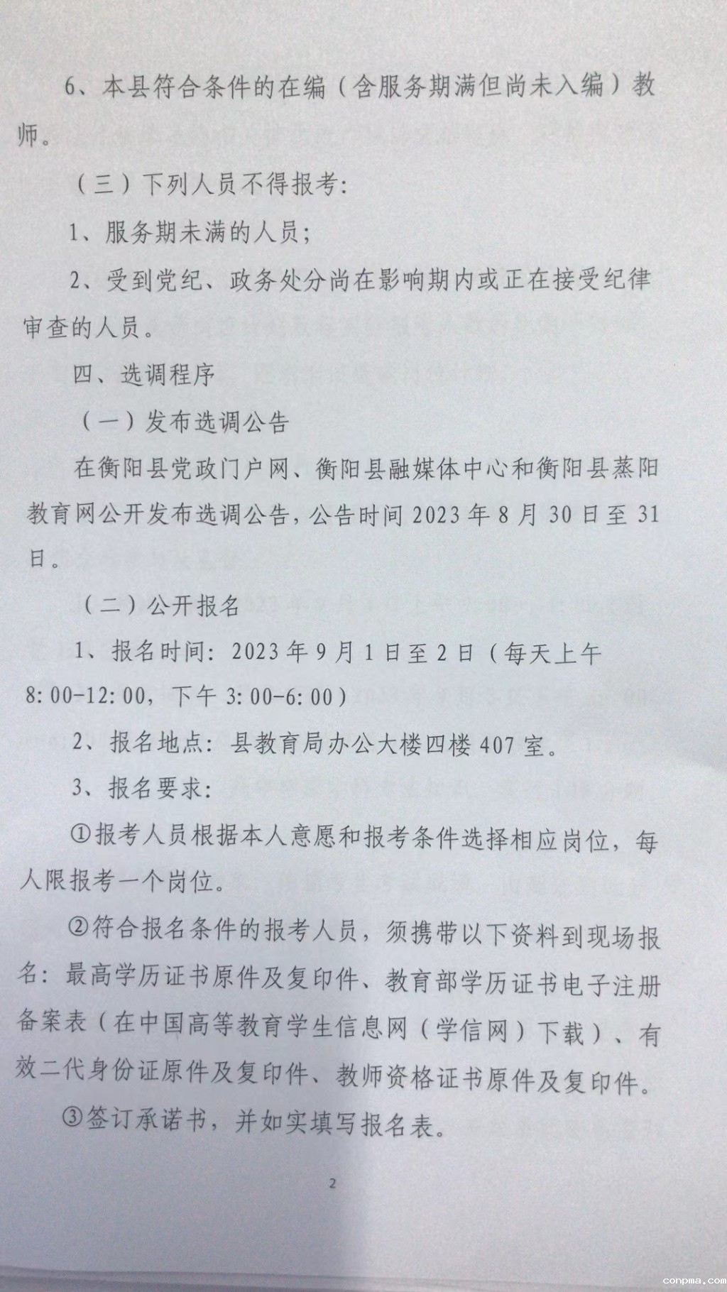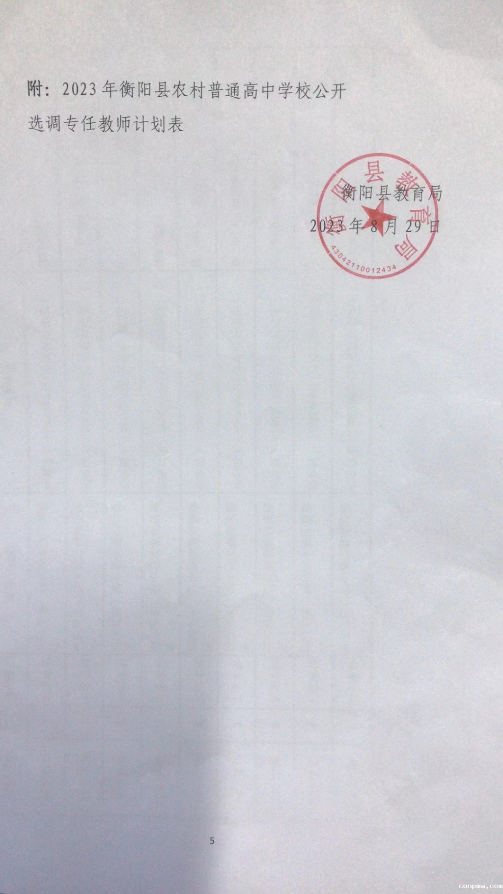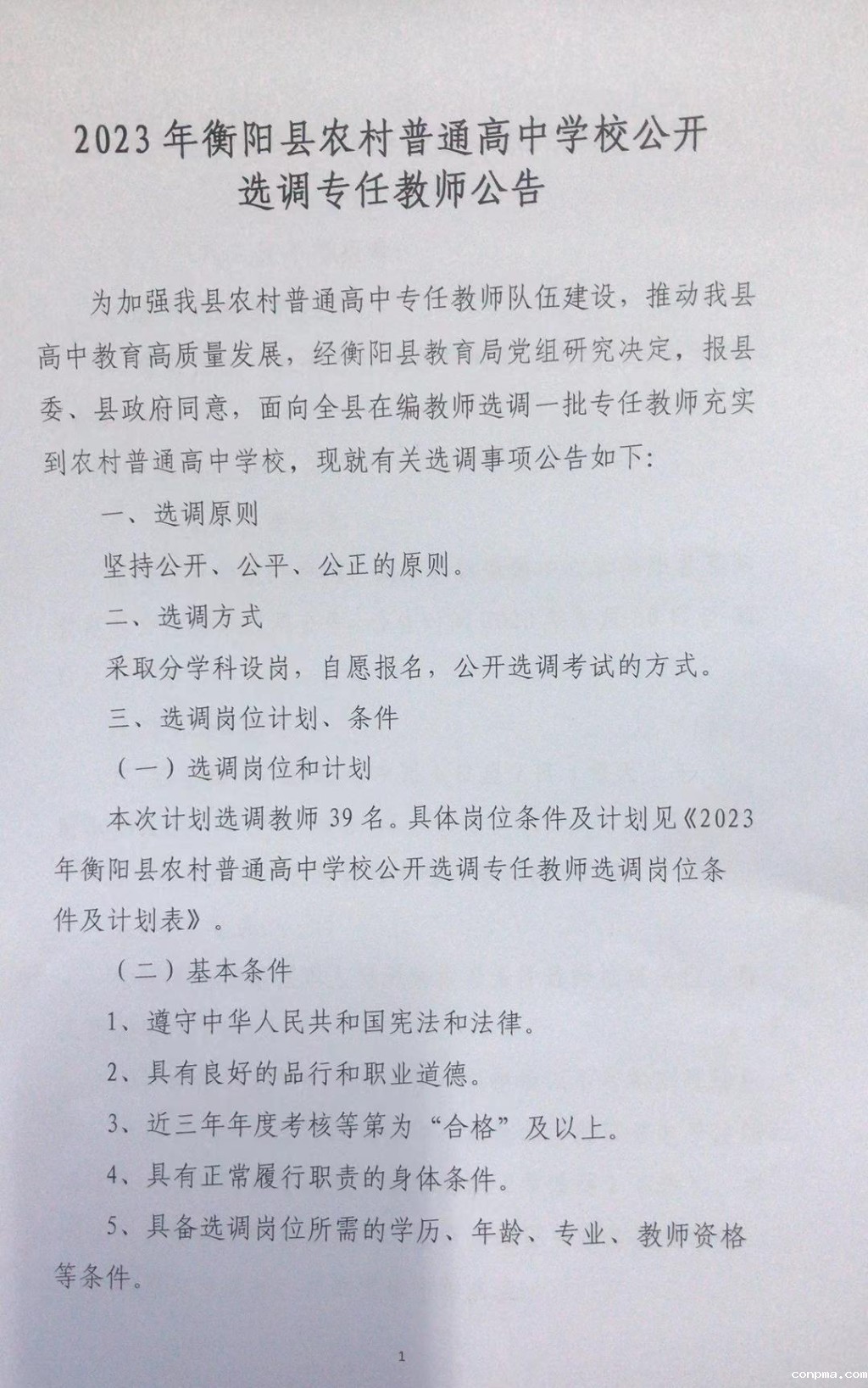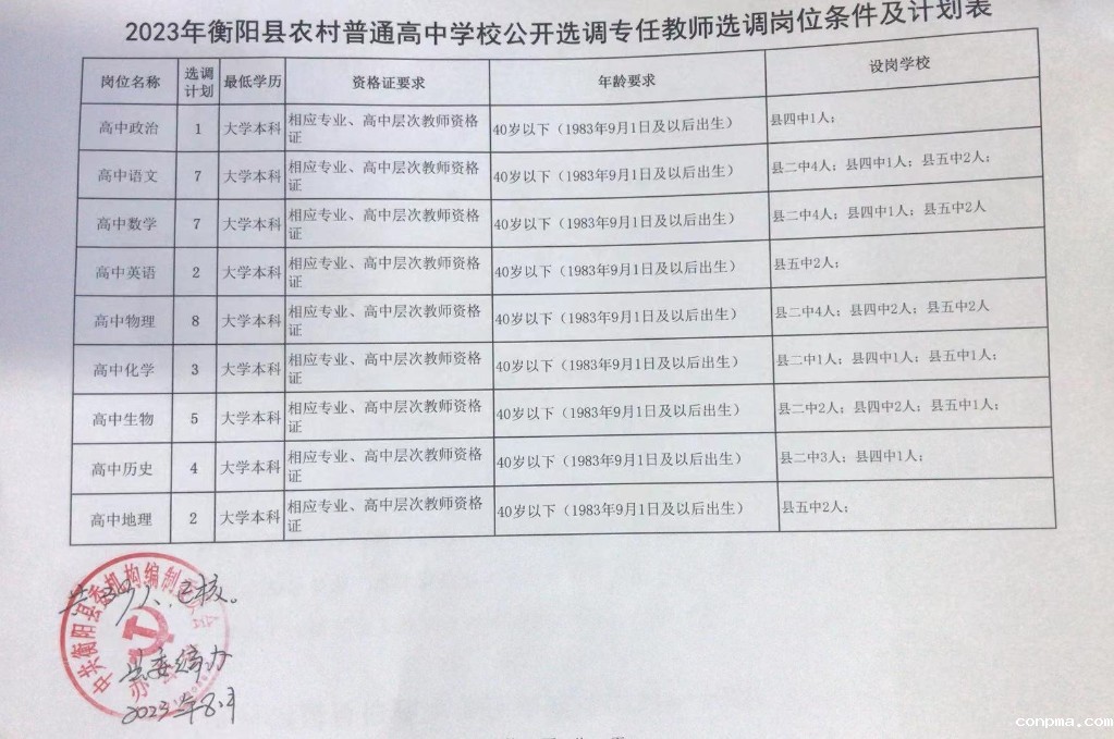 2023年衡阳县农村普通高中学校公开选调专任教师公告