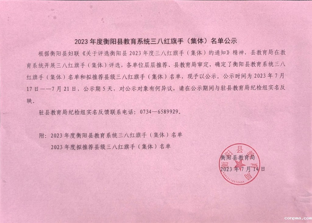 2023年度衡阳县教育系统三八红旗手(集体)名单公示