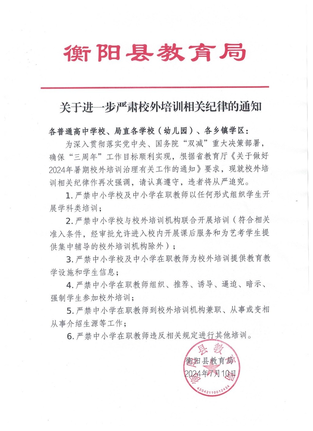 关于进一步严肃校外培训相关纪律的通知