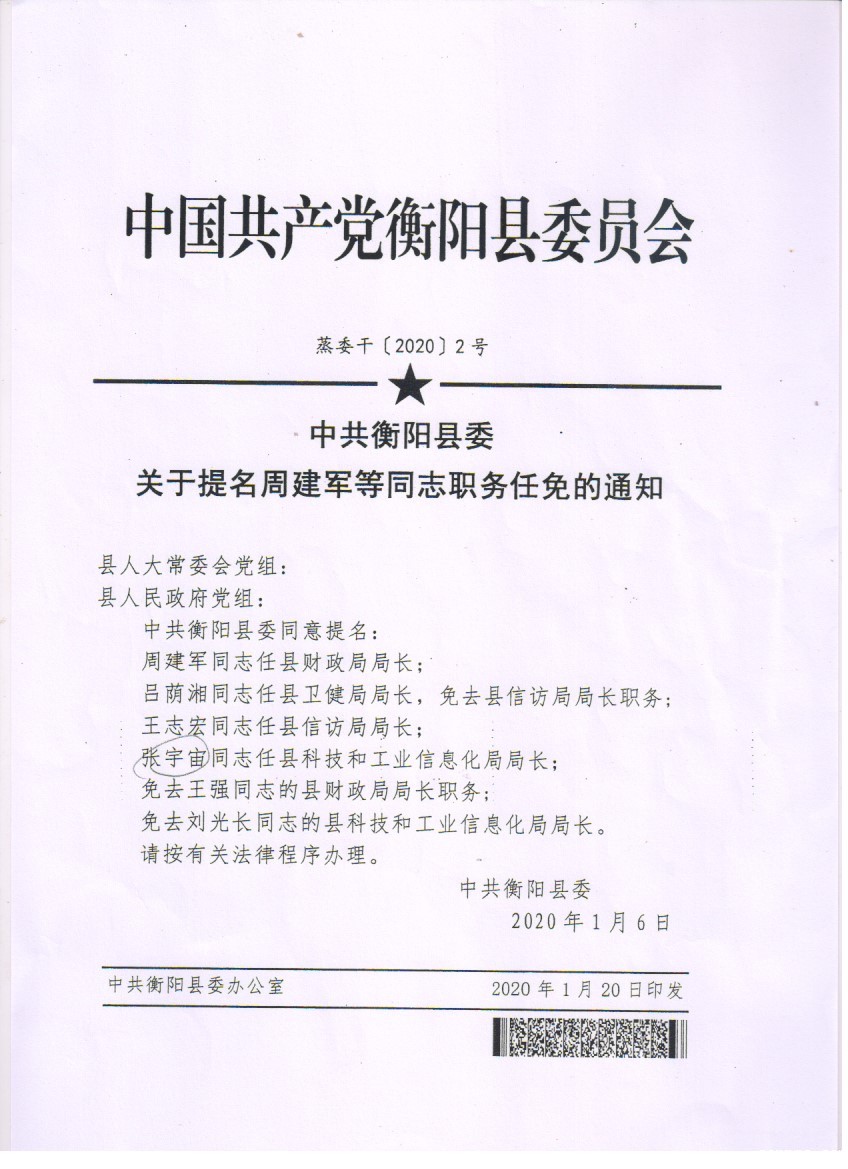 中共衡阳县委关于提名周建军等同志职务任免的通知