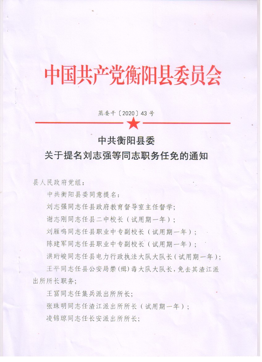 中共衡阳县委关于提名刘志强等同志职务任免的通知