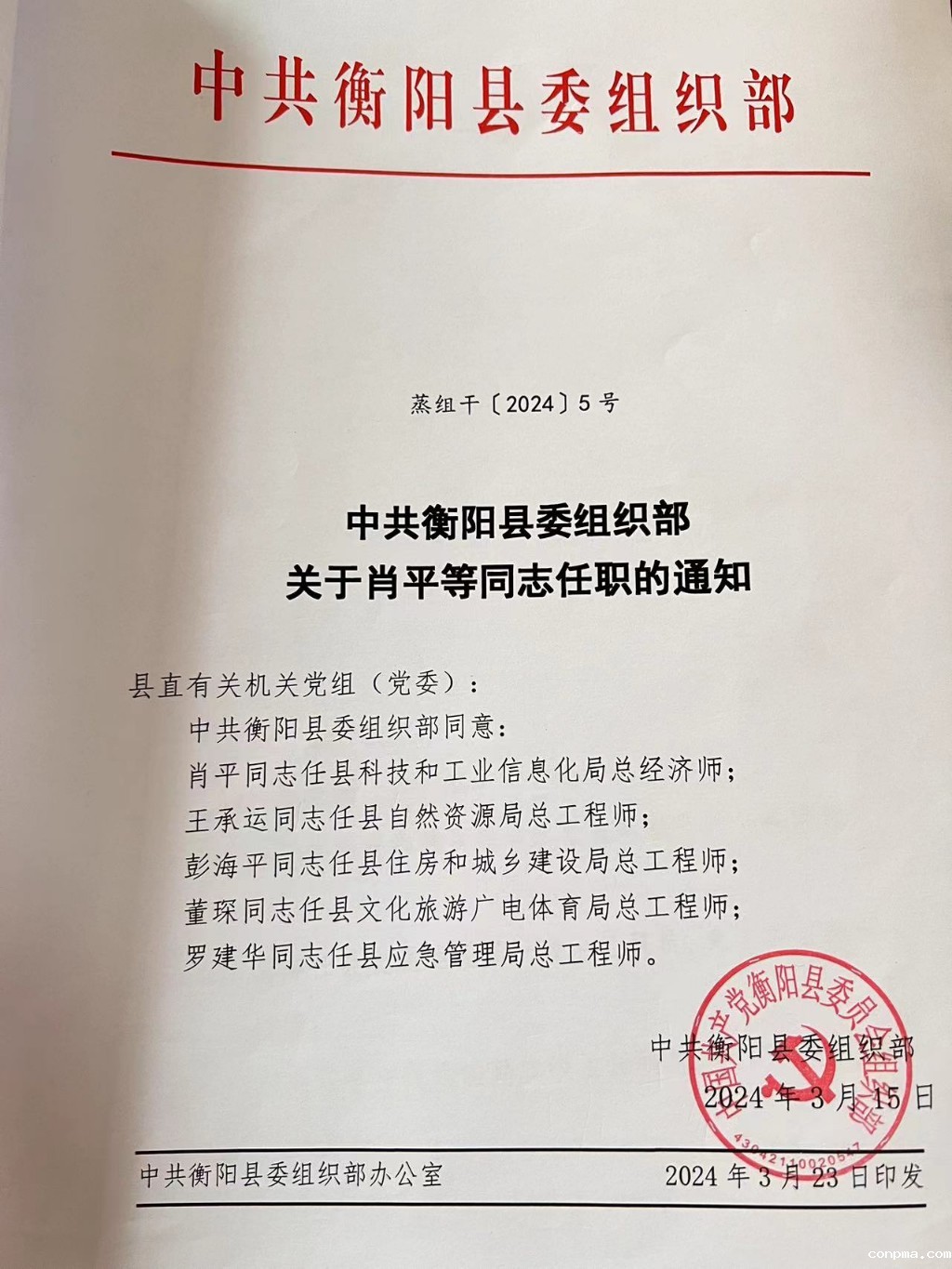 中共衡阳县委组织部关于肖平等同志任职的通知
