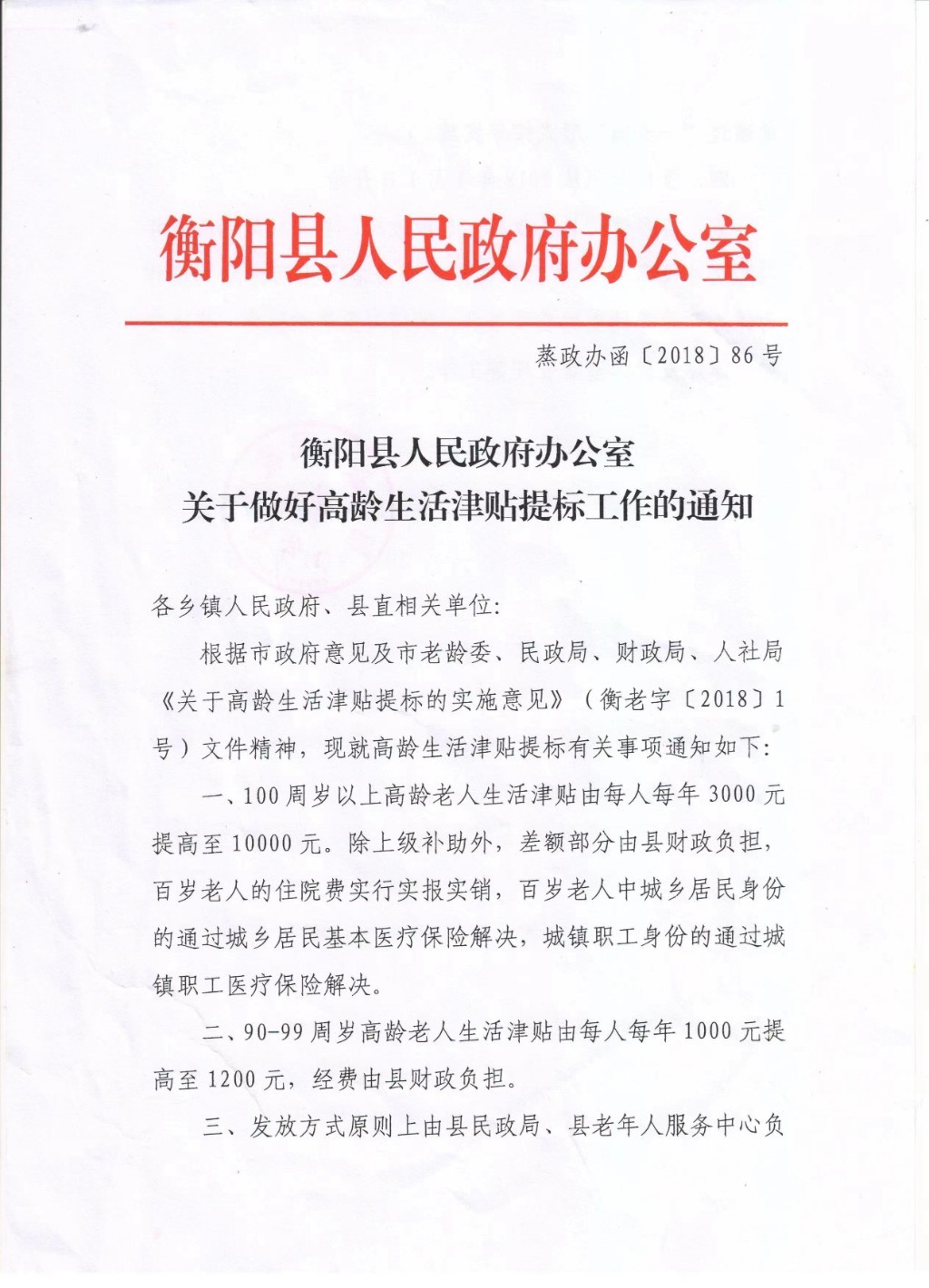 关于做好高龄生活津贴提标工作的通知