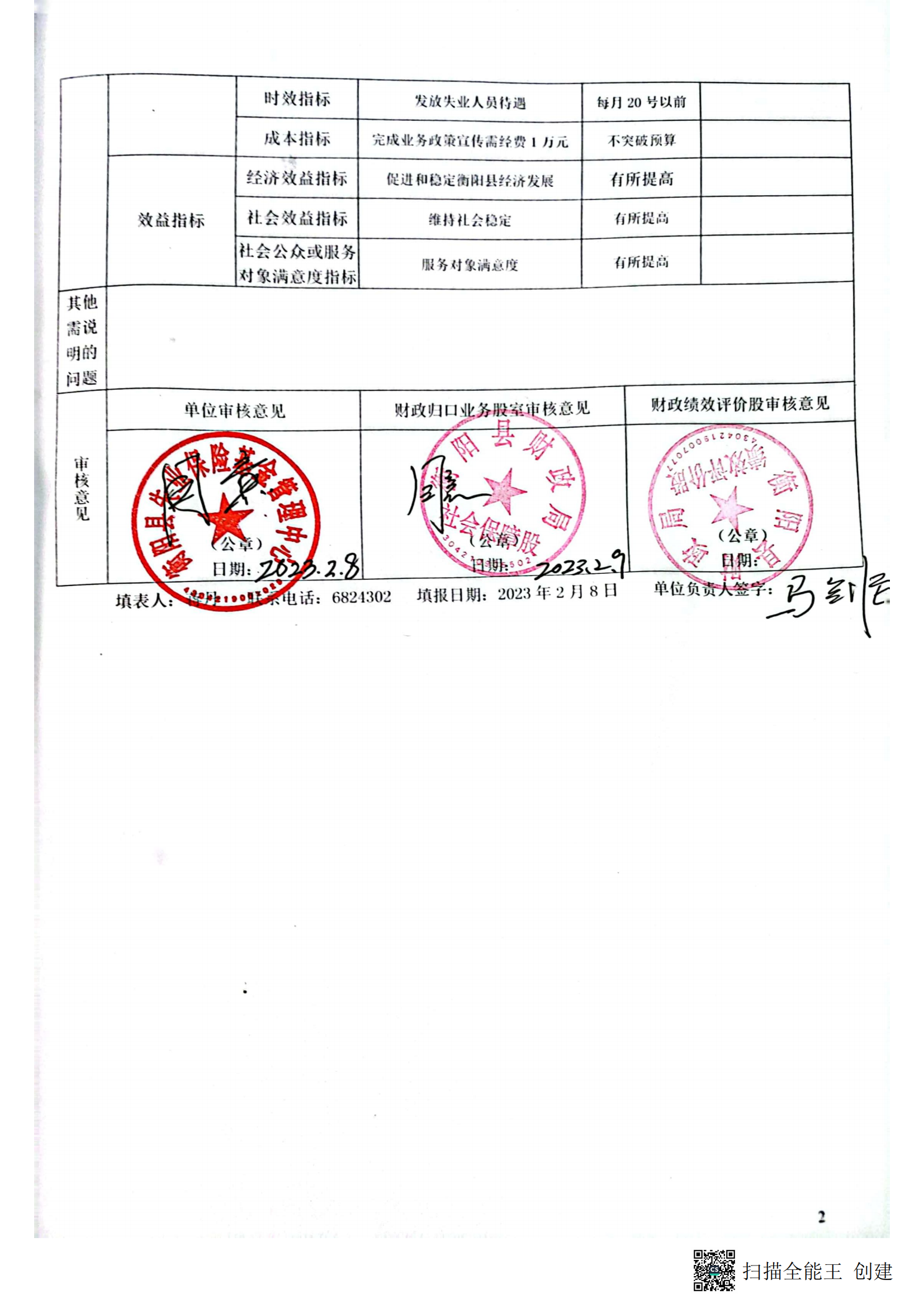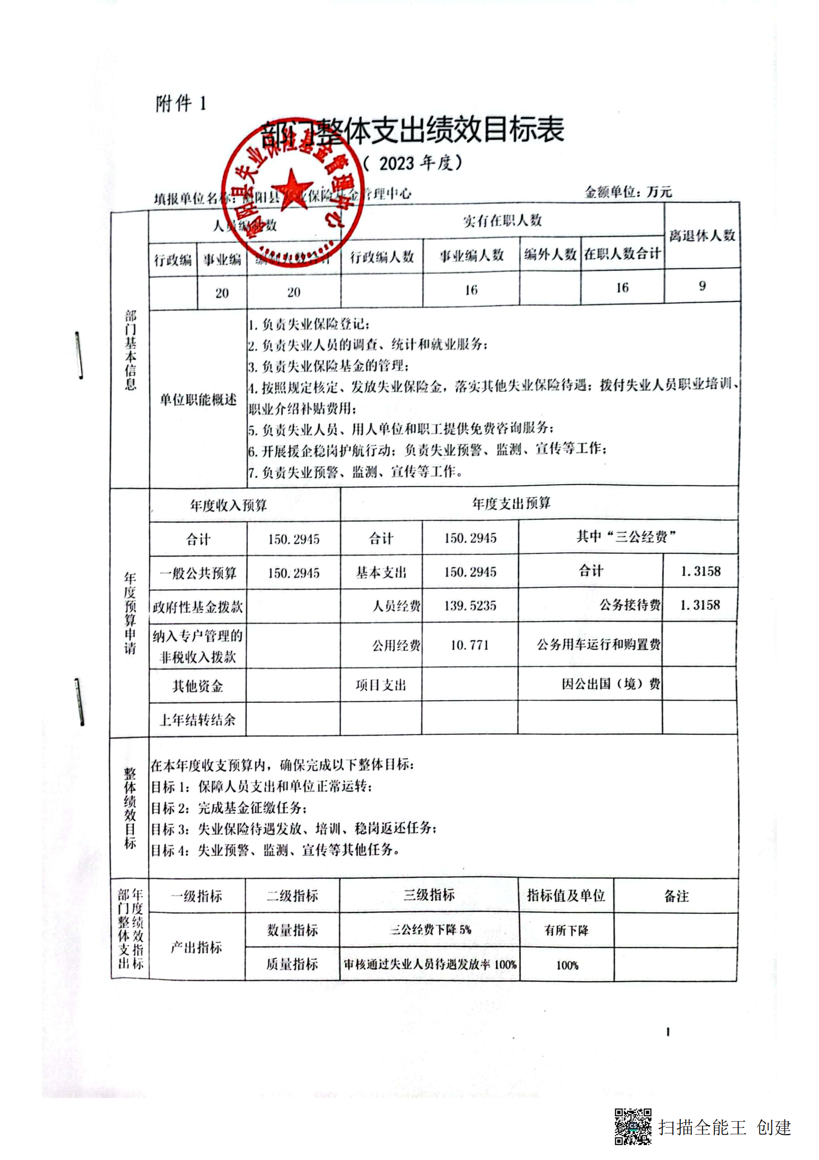 衡阳县失业保险基金管理中心2023年部门整体支出绩效目标表的公示