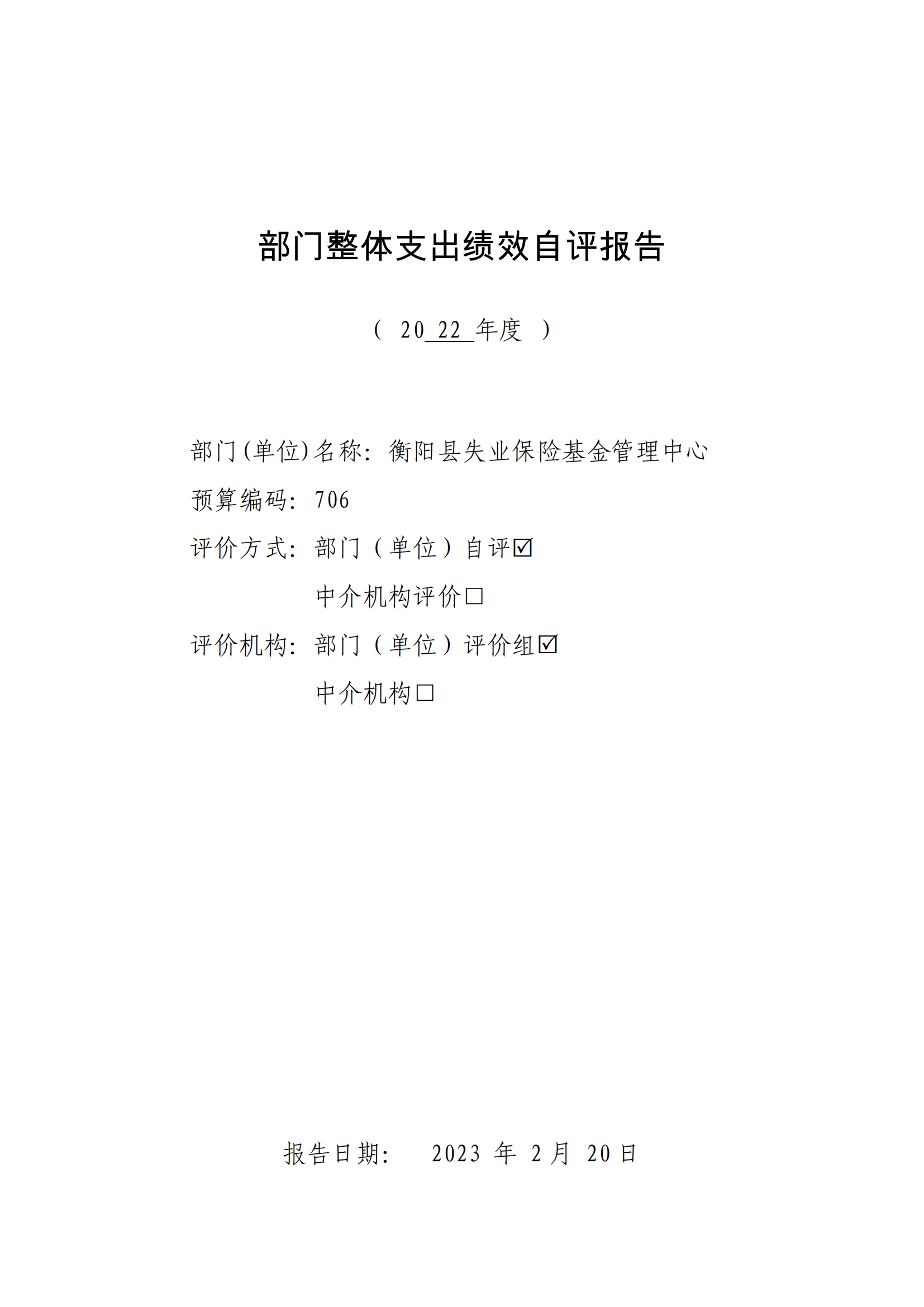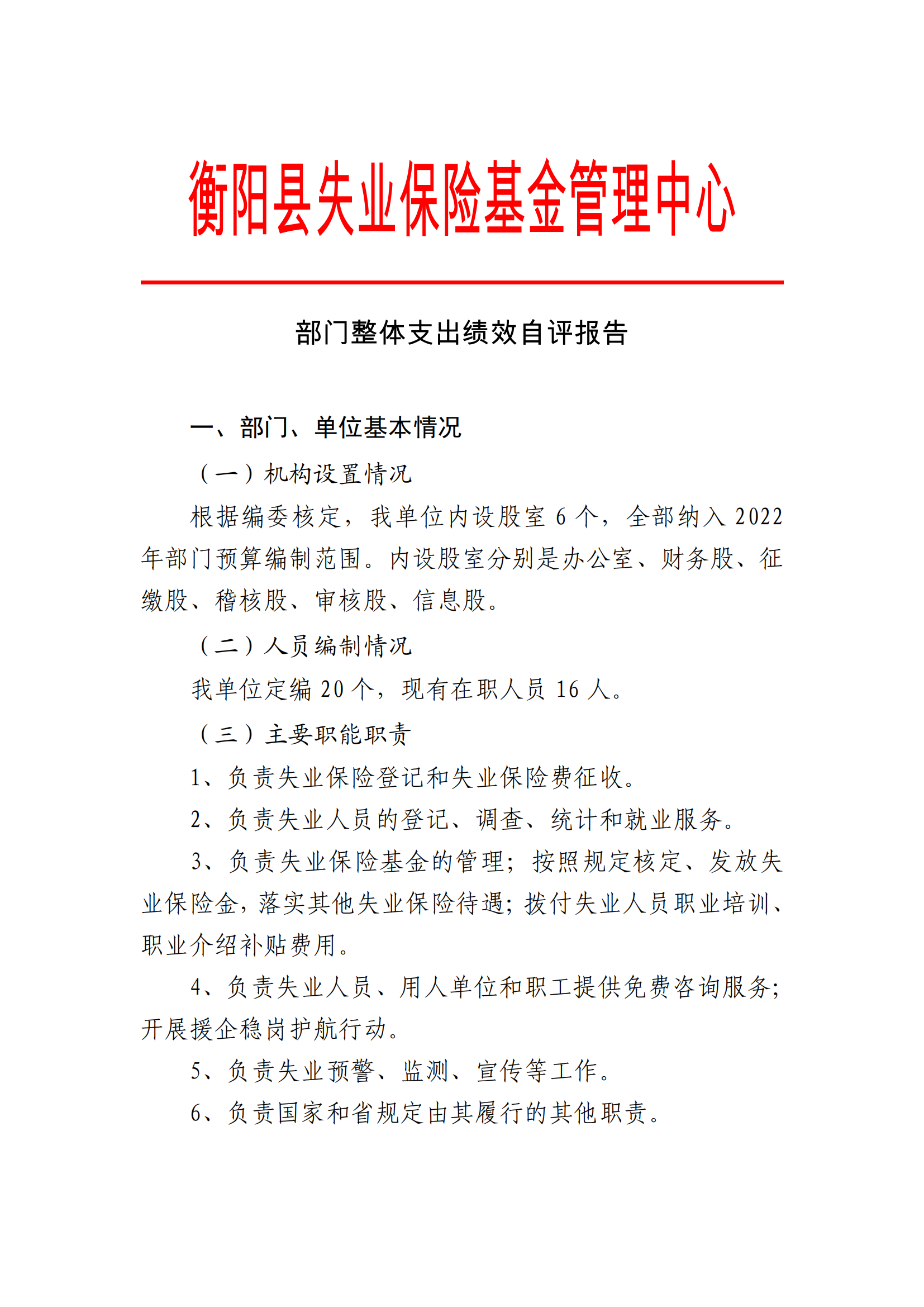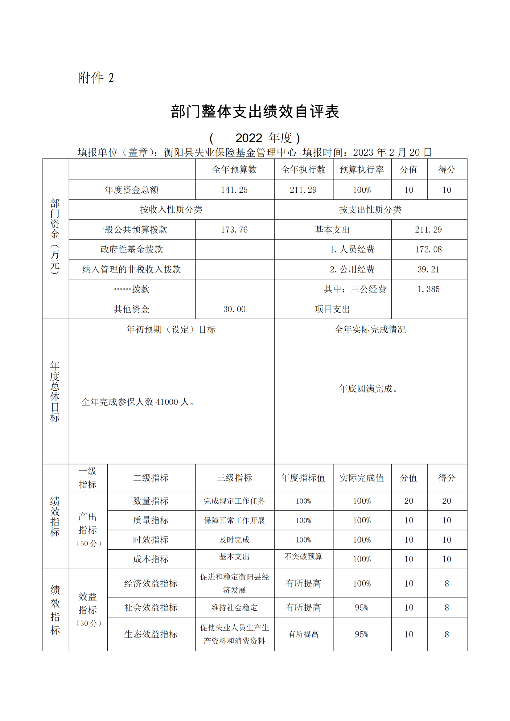 衡阳县失业保险基金管理中心2022年度部门整体支出绩效自评报告