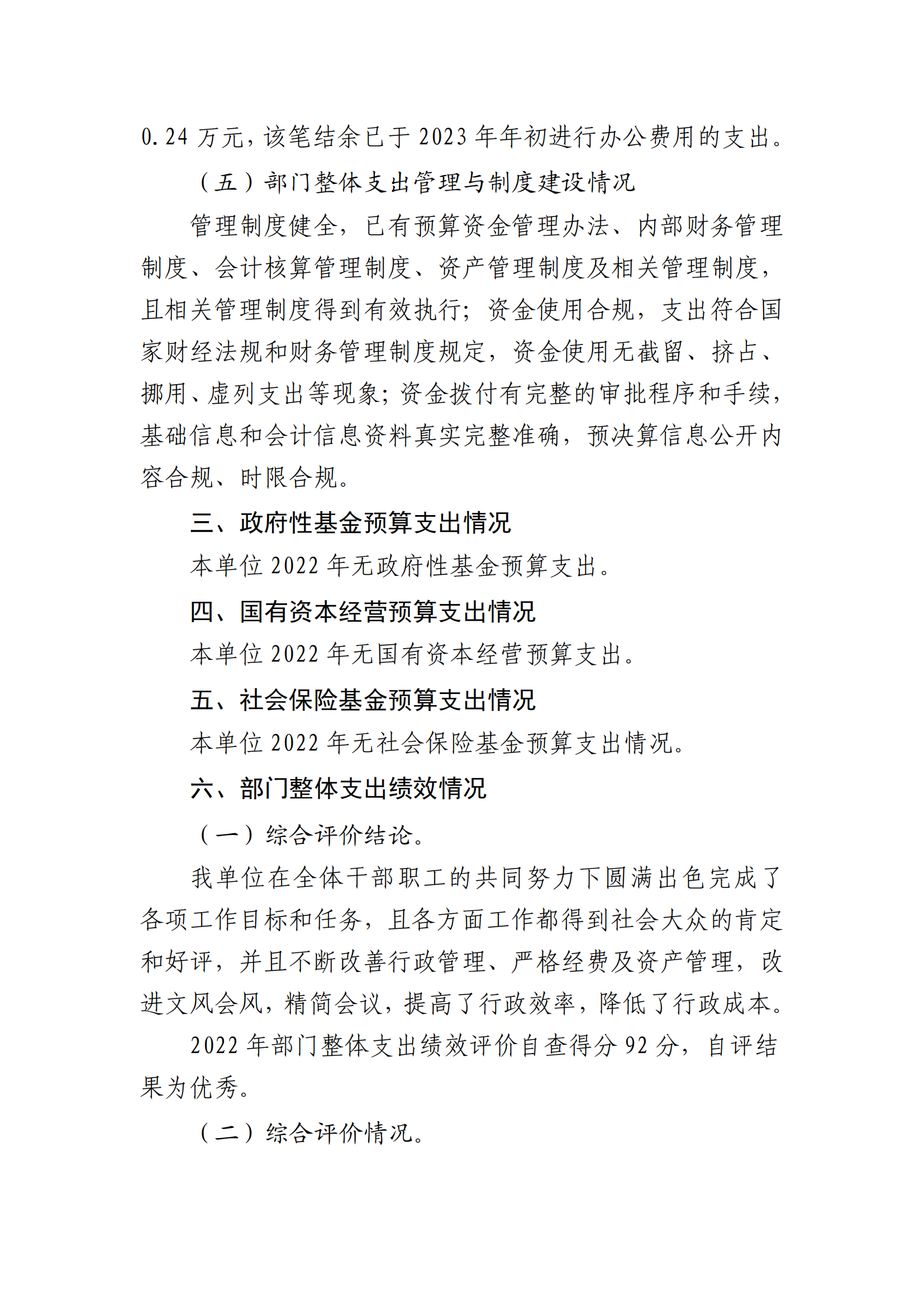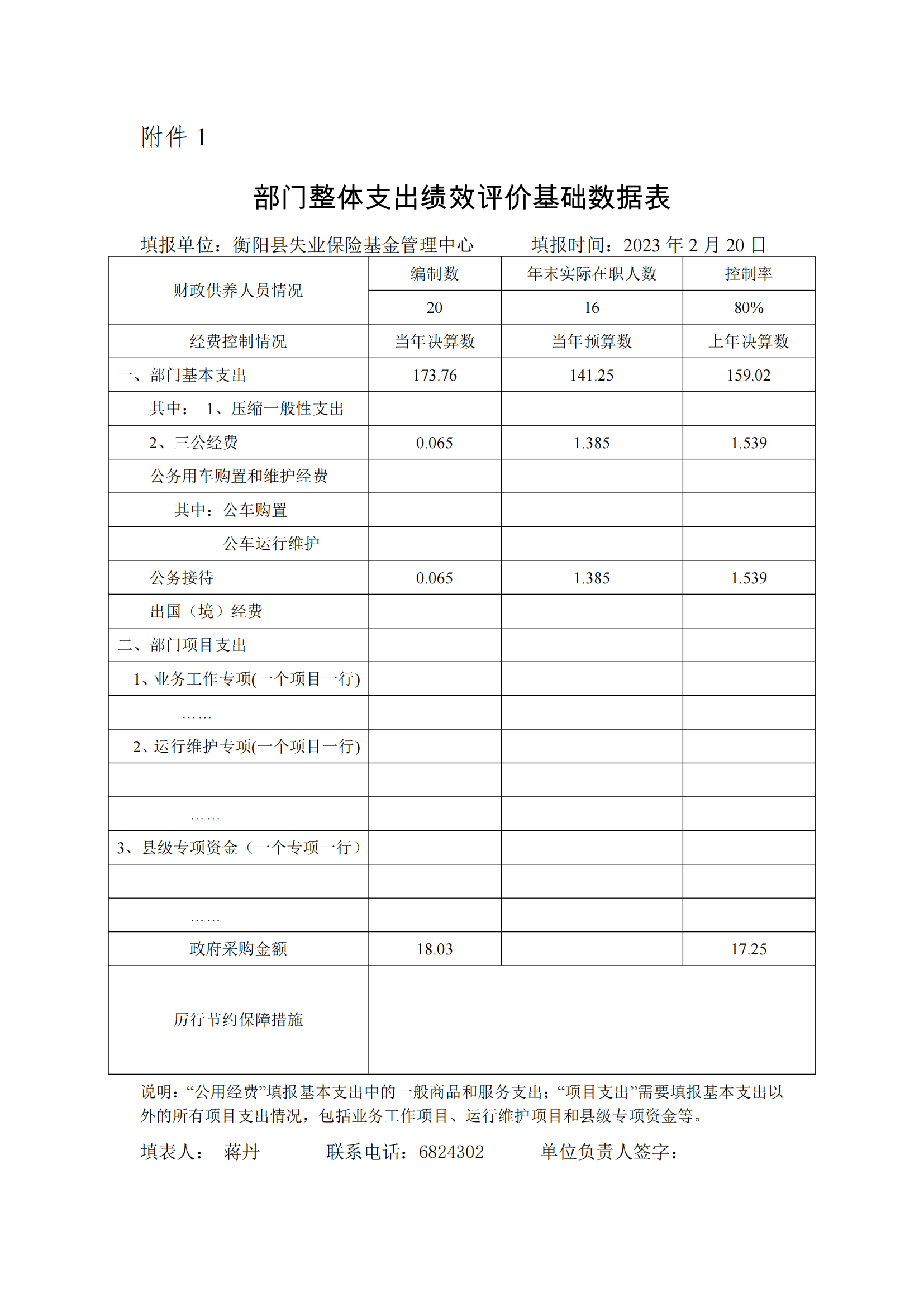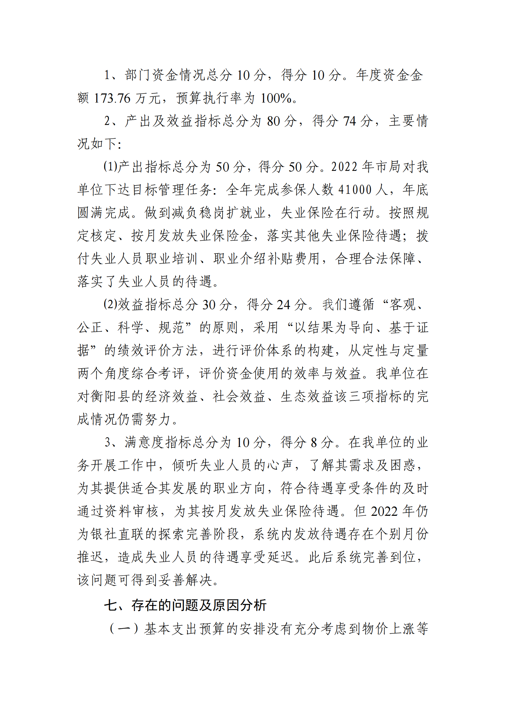 衡阳县失业保险基金管理中心2022年度部门整体支出绩效自评报告