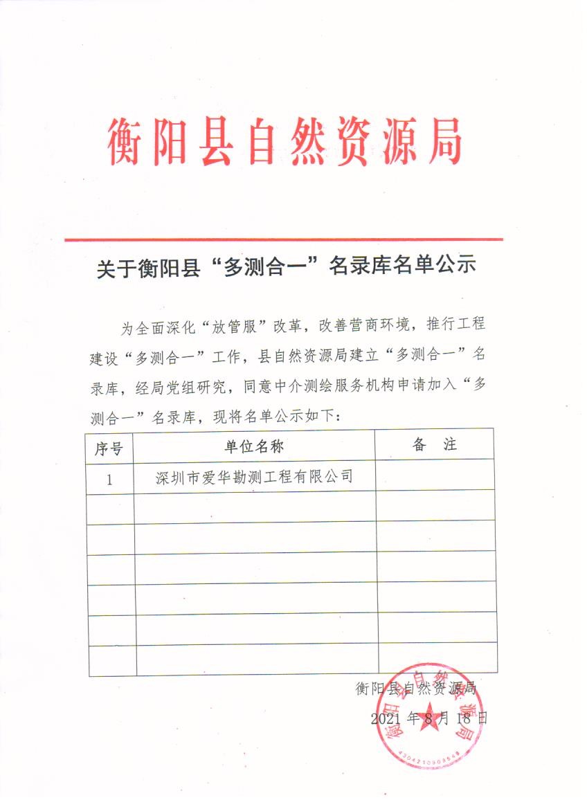 关于衡阳县“多测合一”名录库名单公示