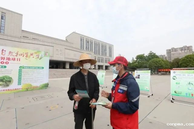 ▲ 向市民发放宣传折页并积极宣讲爱护地球的知识