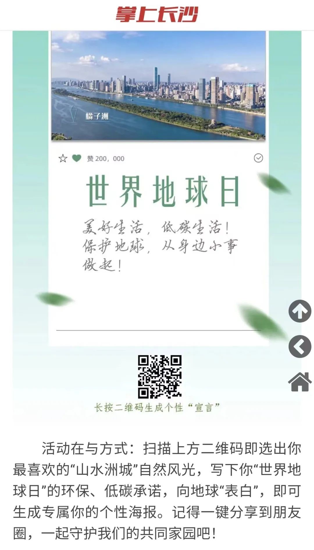 该局特别从“大美长沙”中挑选6幅最贴近绿色、低碳、环保主题的美图,邀你一起“向地球表白”,制作自己的个性海报。(来源:掌上长沙)