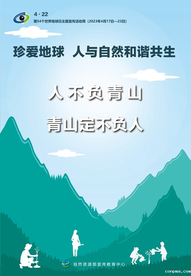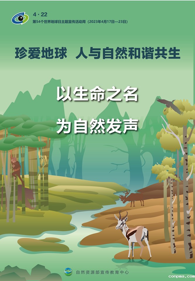 2023年4月22日是第54个世界地球日,宣传主题是“珍爱地球 人与自然和谐共生”。自然资源部宣传教育中心策划制作了系列宣传海报.
