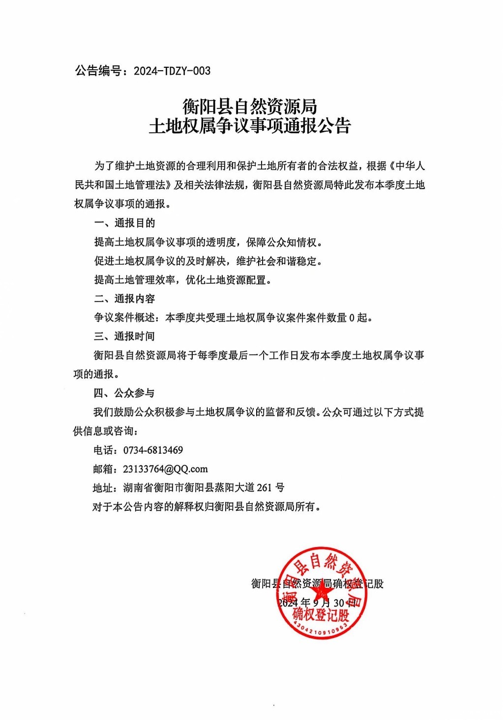 土地权属争议事项通报公告2024-TDZY-003