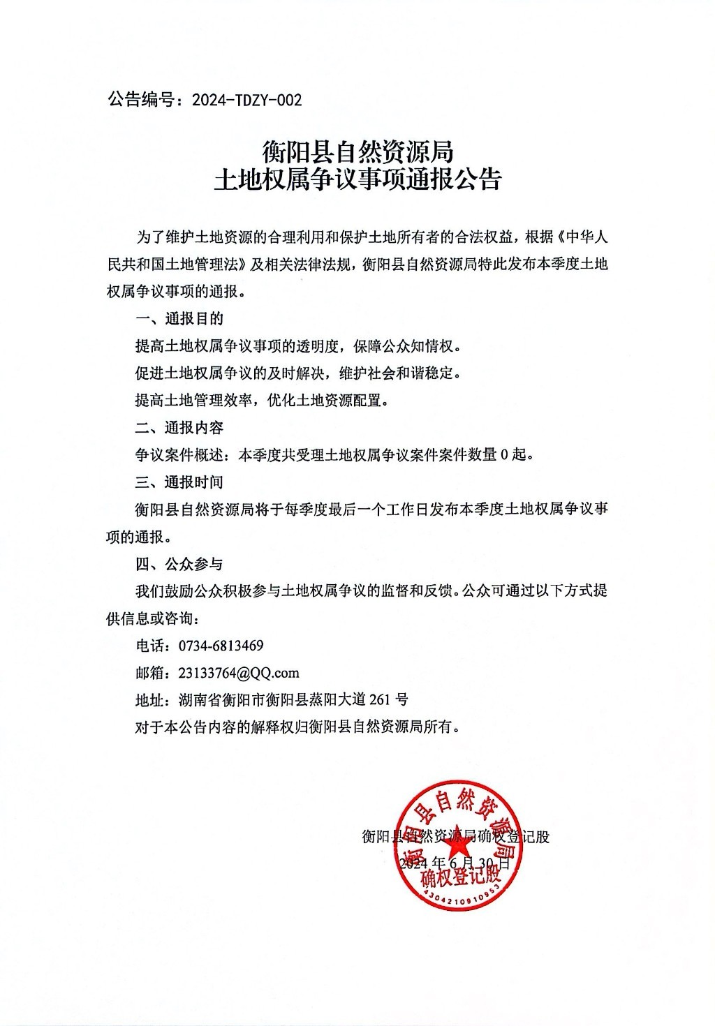 土地权属争议事项通报公告2024-TDZY-002