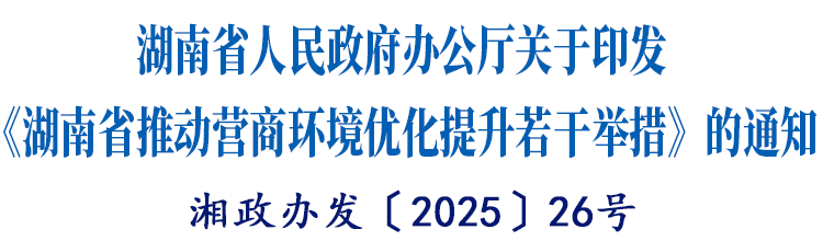 《湖南省推动营商环境优化提升若干举措》已经省委、省人民政府同意,现印发给你们,请认真贯彻落实。