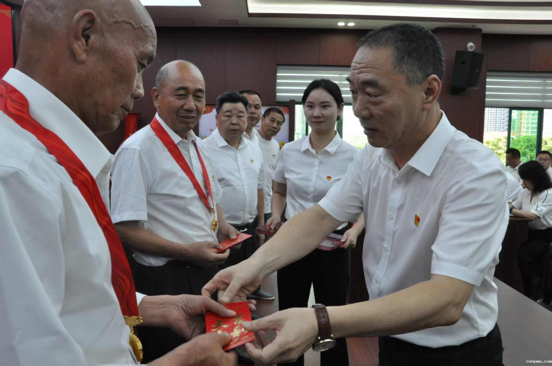 进入建党104周年庆祝环节,大会在雄壮的国歌声中拉开序幕。全体党员在领誓人带领下举起右拳,重温入党誓词。会上,廖俊魁为老党员颁发“光荣在党50年”纪念章,致敬他们数十年如一日的忠诚奉献。同时,局党组宣布将对26名生活困难党员、老党员开展集中走访慰问,发放慰问金传递组织关怀。