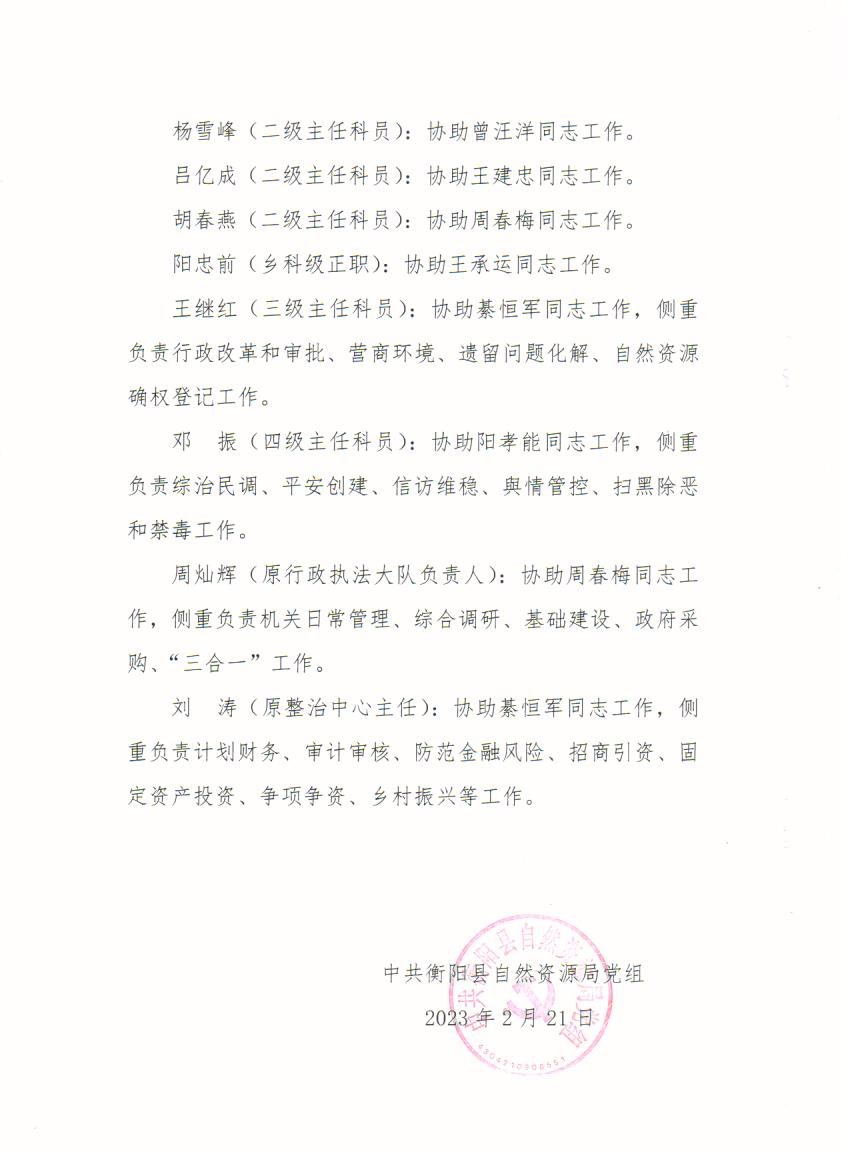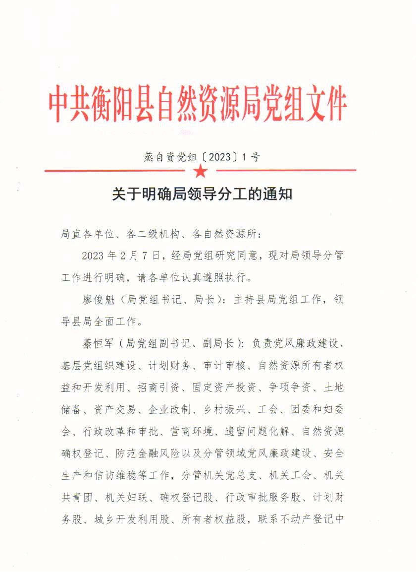 蒸自资党组【2023】1号关于明确局领导分工的通知
