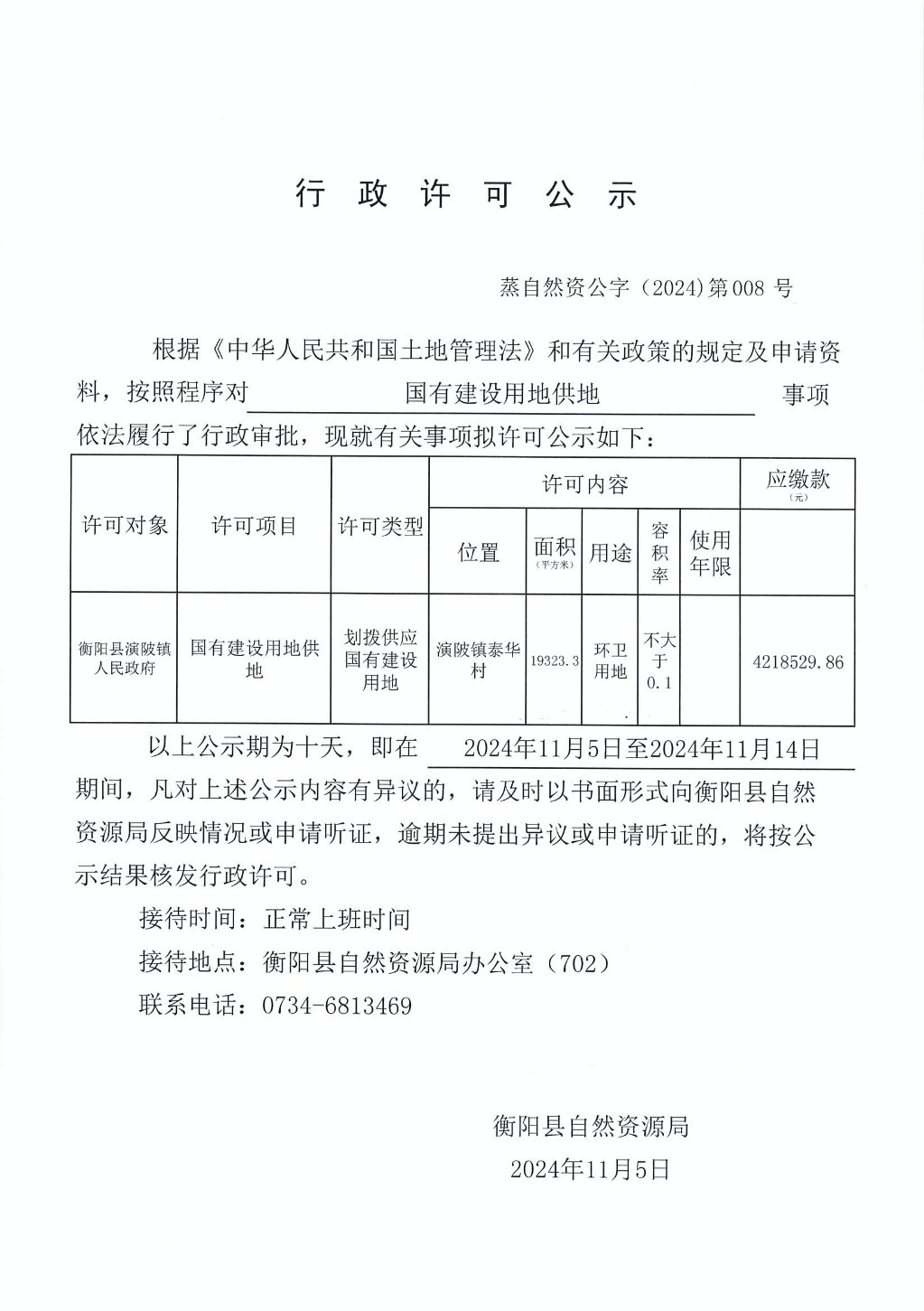 行政许可公示蒸自然资公字(2024)第008号
