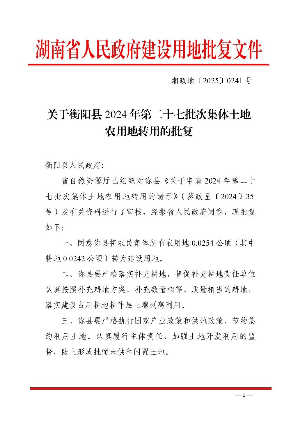 衡阳县2024年第二十七批次集体土地农用地转用