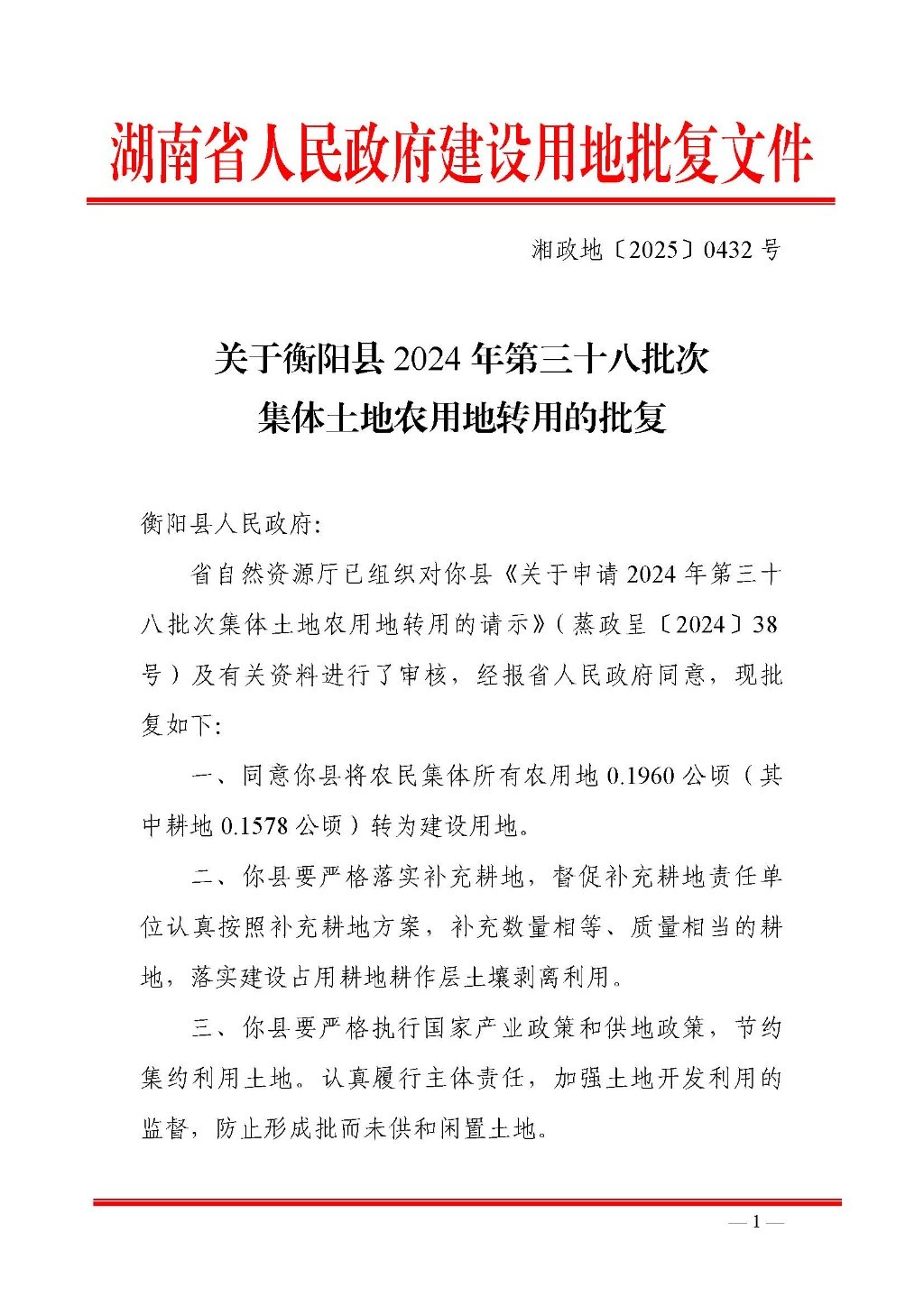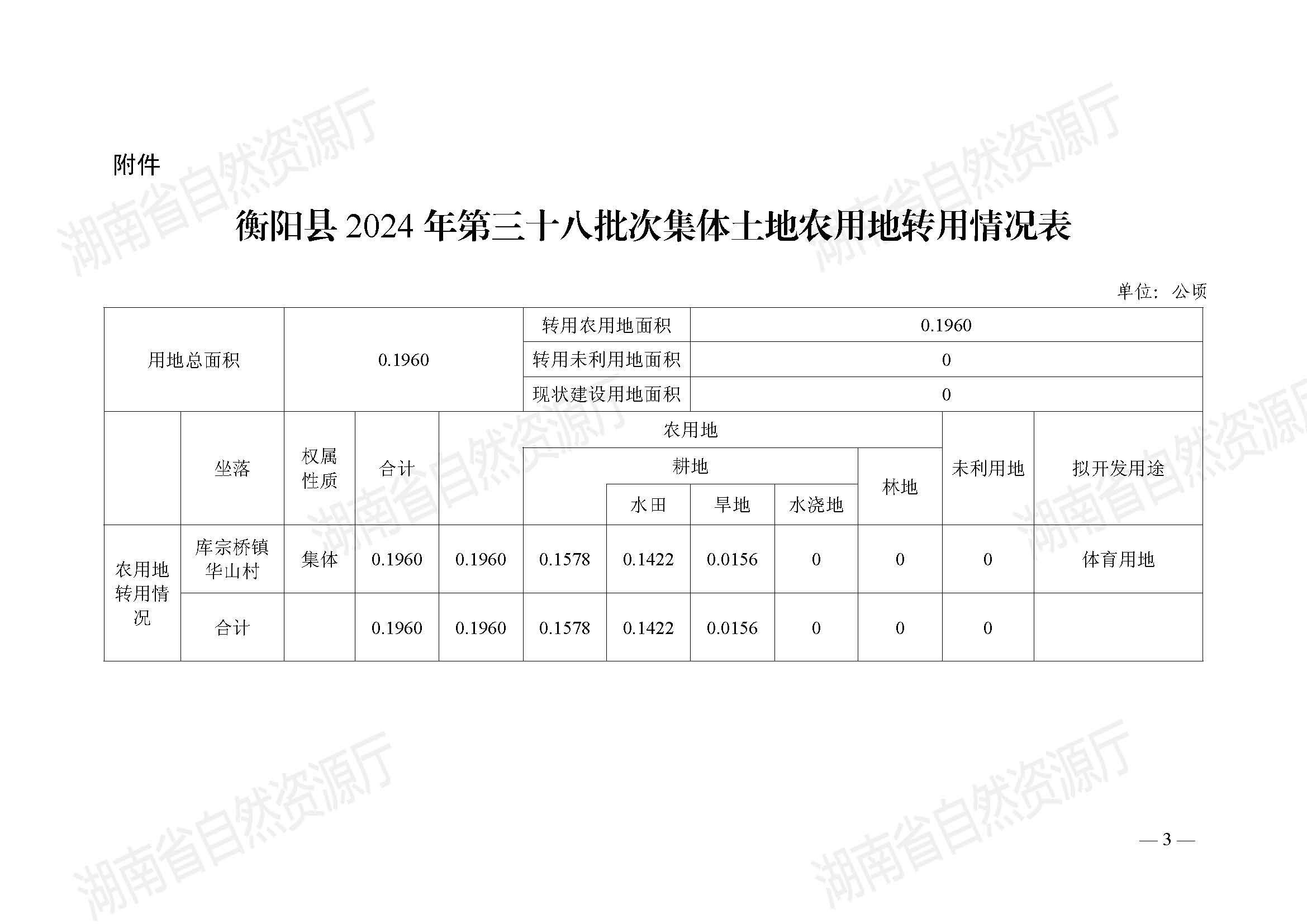 衡阳县2024年第三十八批次集体土地农用地转用