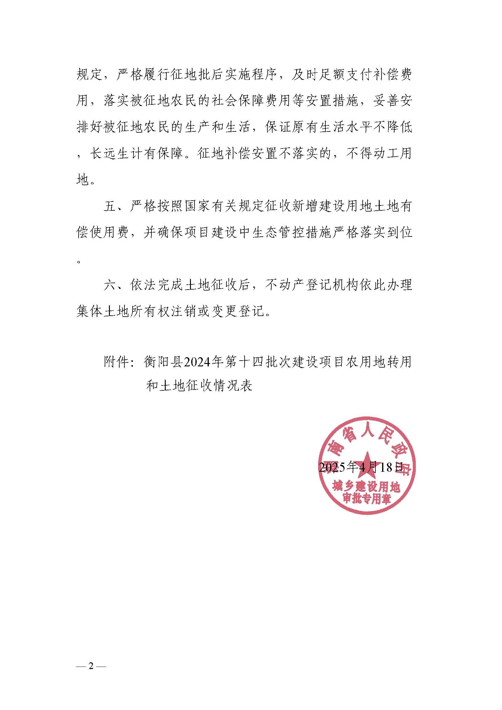 衡阳县2024年第十四批次建设项目