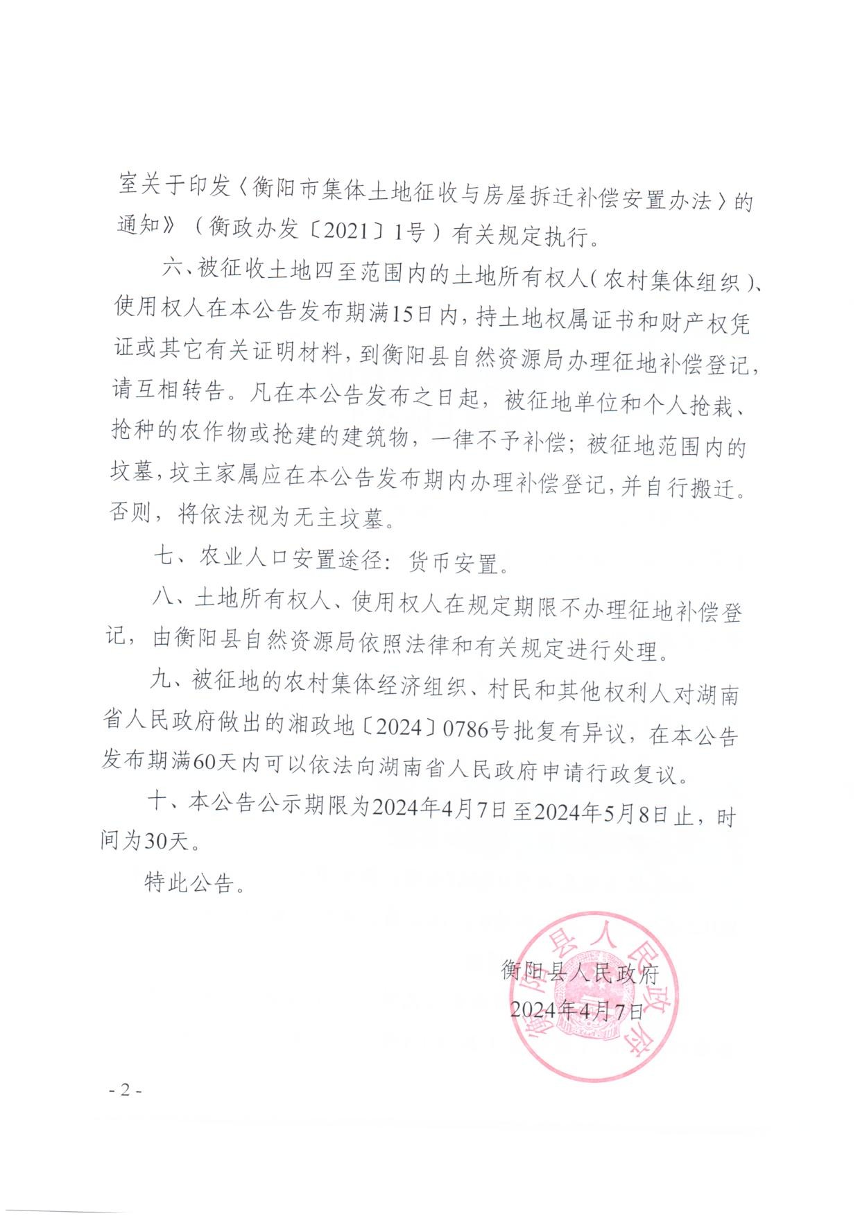 蒸政通【2024】6号征收土地公告