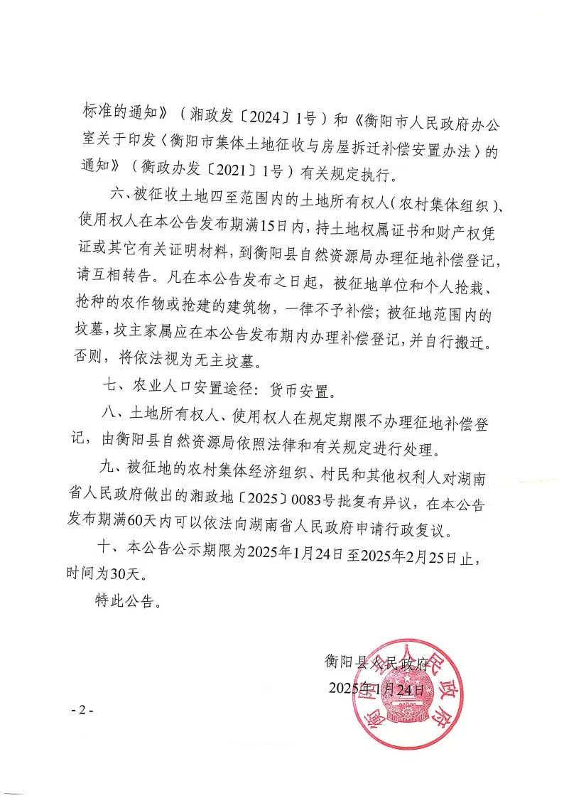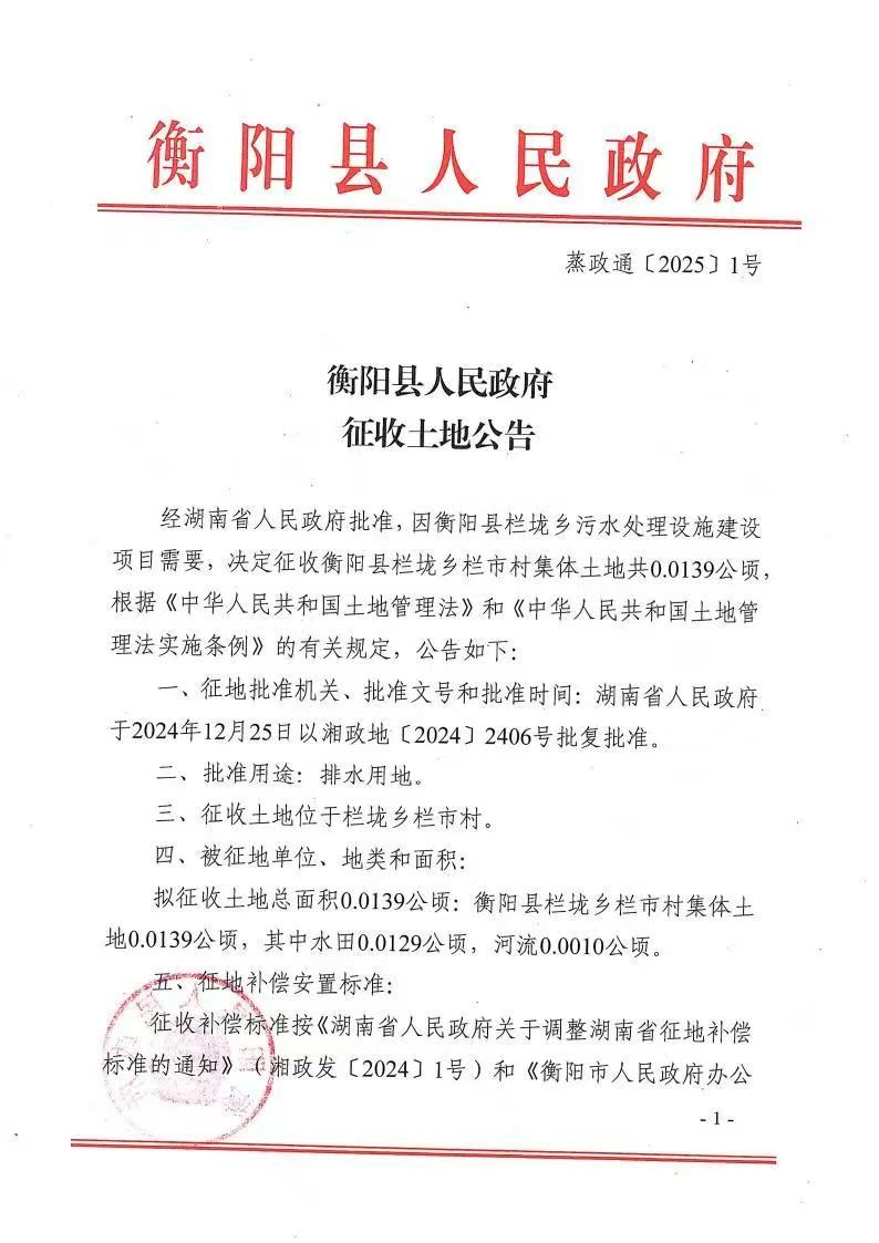 蒸政通【2025】1号征收土地公告