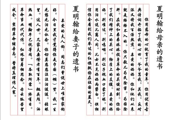 夏明翰就义前写给母亲、妻子的家书(资料图)