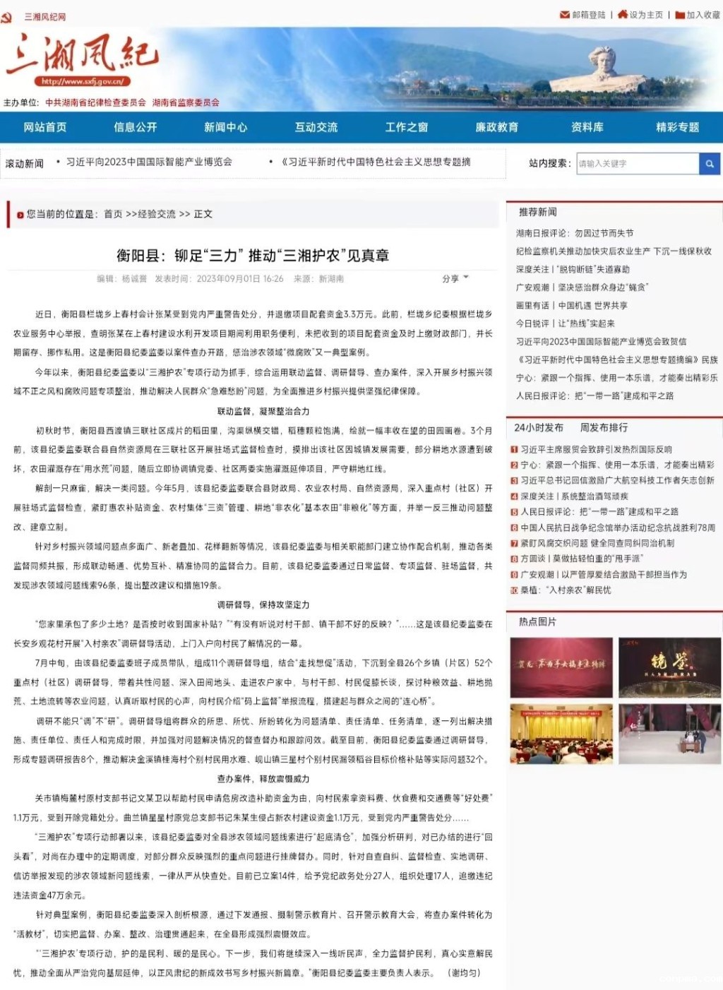 ▲省纪委监委网站推介衡阳县“三湘护农”工作经验
