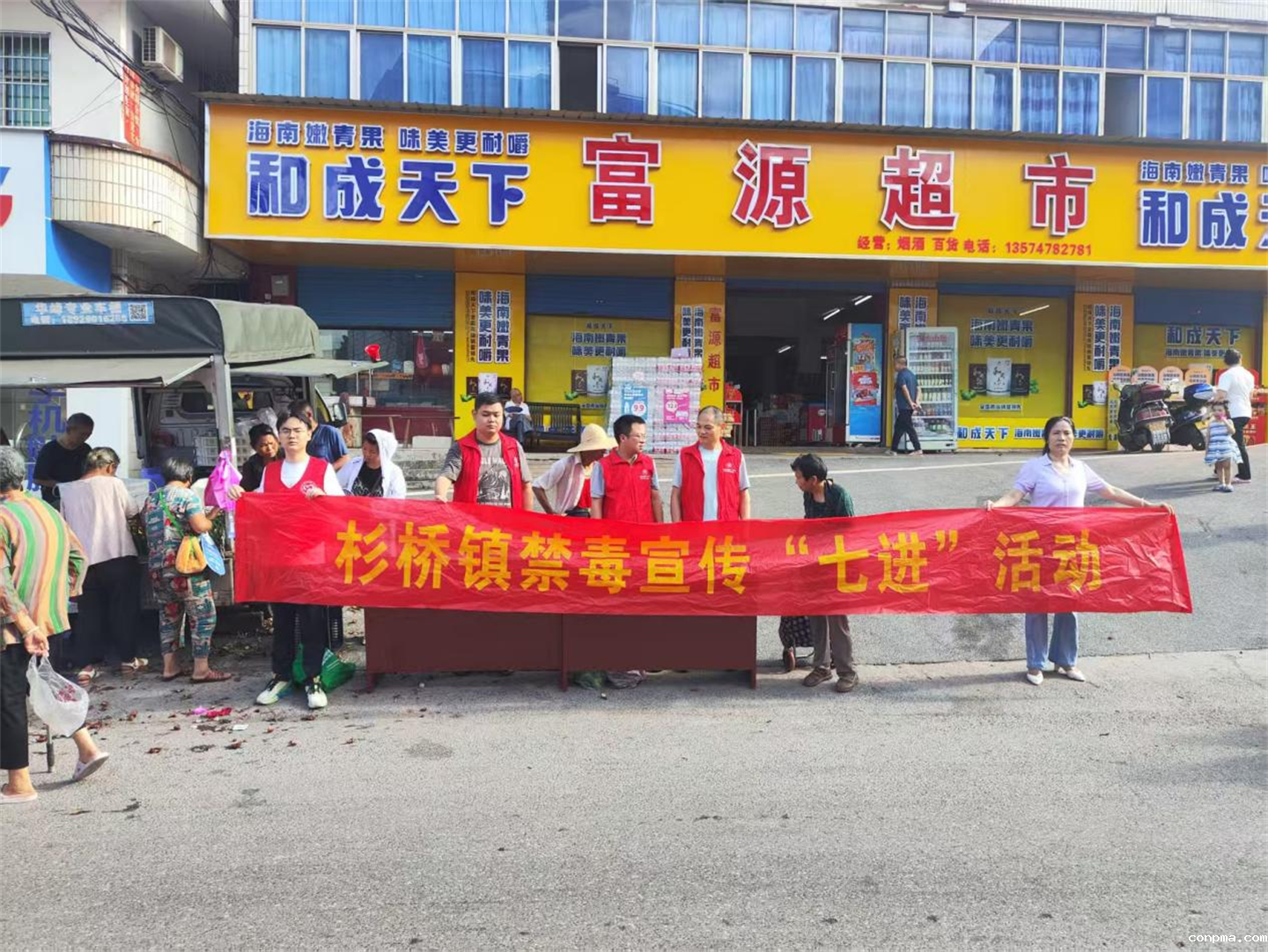 为切实增强群众对毒品的防范能力,织密禁毒防护网,近日,衡阳县杉桥镇在全镇范围内开展禁毒宣传活动,旨在凝聚起“珍爱生命、远离毒品”的广泛共识,守护一方净土与万家安宁。