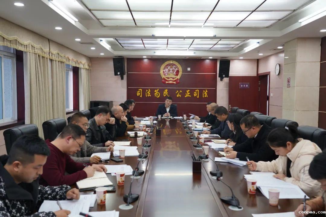 为推动法治化营商环境工作再上新台阶,3月6日,衡阳县法院召开2025年度营商环境工作部署会。会议由党组书记谢海涛主持,全体班子成员、各庭室负责人参加会议。
