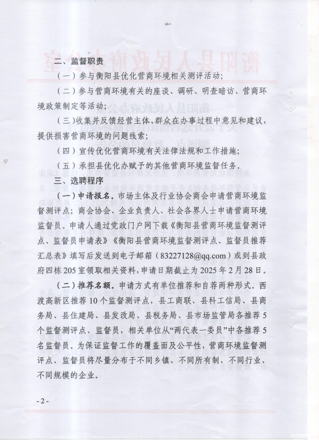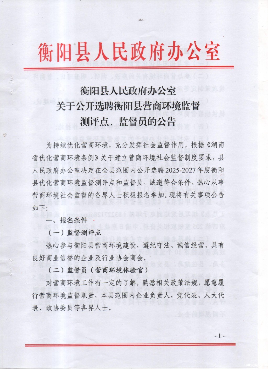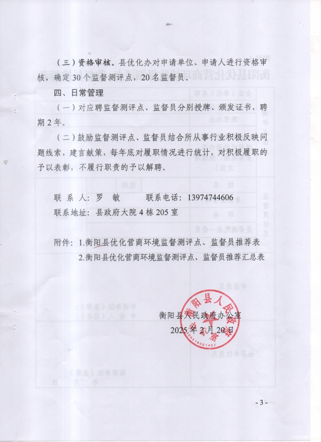 附件1 衡阳县优化营商环境监督测评点、监督员推荐表