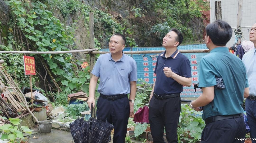 在湘衡彩印厂家属房,因近日多次强降雨导致后山山体发生滑坡,部分道路出现裂缝,对附近群众居住和出行带来安全隐患。曾建华深入滑坡现场,详细了解滑坡塌方量、塌方面积和对居民造成的影响。他强调,要始终坚持人民至上、生命至上的理念,及时对塌方区域进行抢修,消除安全隐患,强化防范应对措施,提高附近居民安全防范意识,确保人民群众生命财产安全。