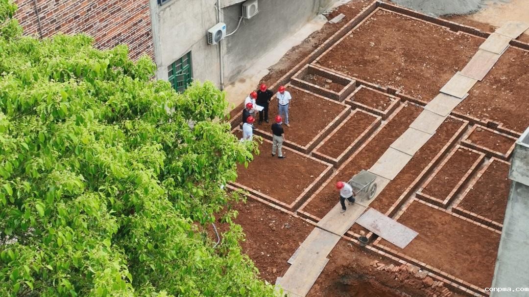 在库宗桥镇金华村,工作人员正对新建房屋基坑验槽相关内业资料进行检查,对基槽的轴线位置、标高、基坑定位、平面尺寸等情况进行验收,并抽取钎探点位进行复勘,提供技术指导,帮助他们解决施工中遇到的技术难题。