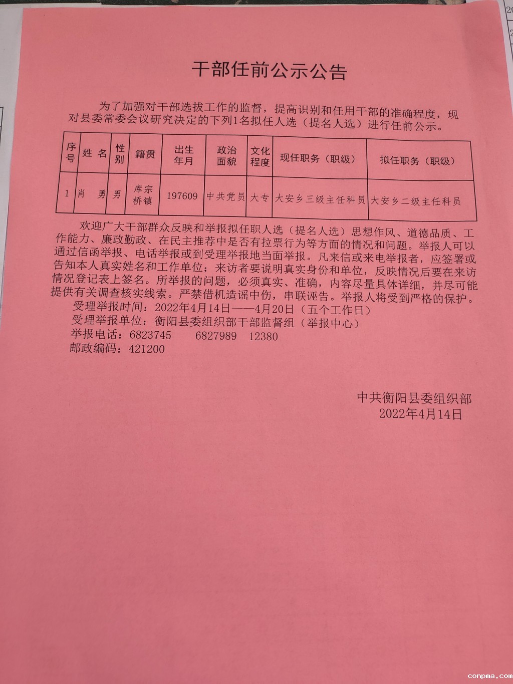 干部任前公示公告