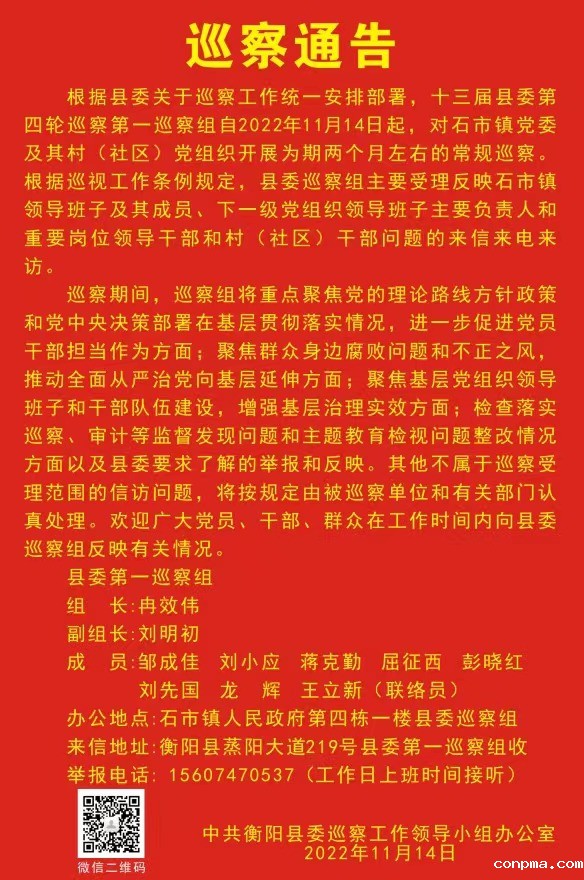 根据县委关于巡察工作的统一部署,2022年11月14日上午,县委第一巡察组巡察石市镇党委及其村(社区)党组织工作动员会召开。