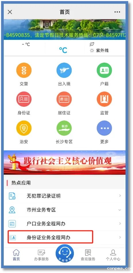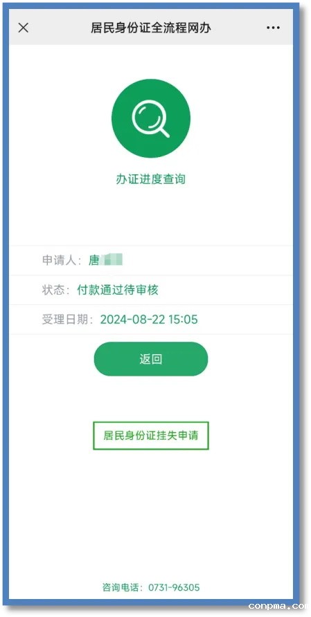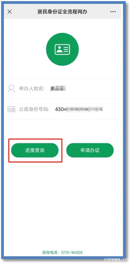 四、申请人在身份证办理过程中,如需咨询相关业务,可在工作日(9:00—12:00,13:00—17:00)致电0731-96305。