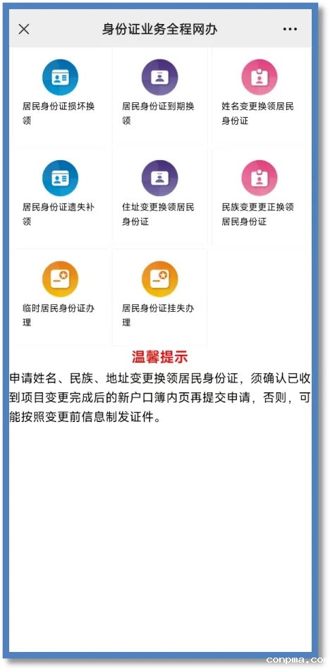 为方便湘籍居民办理身份证业务,湖南公安机关在身份证网上补领、临时身份证网上申领、身份证网上挂失的基础上,从2024年8月26日起,新推出有效期满换领身份证、姓名变更换领身份证、住址变更换领身份证、民族变更更正换领身份证、损坏换领身份证五项全流程网上办理服务。