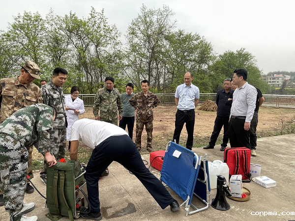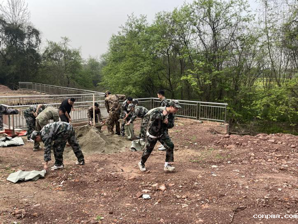 演练模拟演水河流域遭遇50年一遇强降雨,张湾组河段水位30分钟暴涨70公分,1名群众被困孤岛。在县应急管理局技术指导组专家的示范下,抢险队员严格按照省级防汛标准展开救援:指导组专家现场演示土工膜铺设与沙袋"错缝压茬"堆叠技法,带领20名队员以梯形结构构筑2米高防洪堤,1小时内完成800个沙袋精准封堵;同步指导皮筏艇救援组采用抛投器定位、活饵救援等专业流程,7分钟成功转移受困村民。镇党委书记全程参与堤防巡查,强调"要以科学流程筑牢防线,确保每一处抢险操作规范到位"。