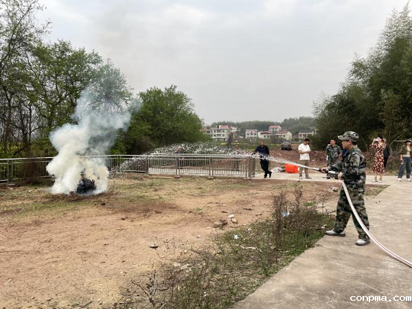 上午10时,演练转入森林火险科目。模拟张湾组后山因祭祀用火引发3级火情,县技术指导组携专业设备现场教学:一名专家示范二号工具(灭火拖把)的"拍、打、扫、压"四步灭火法,组织15名队员沿火线东侧开辟10米宽隔离带;另一名专家指导突击组操作背负式细水雾灭火枪,采取"穿插分割、递进超越"战术扑灭树冠火。在技术组指令下,镇消防车配合高压水泵远程输水,形成"水枪压制明火+消防车覆盖火场"立体攻势,18分钟扑灭模拟火场,实现"三无"(无复燃、无伤亡、无次生灾害)目标。