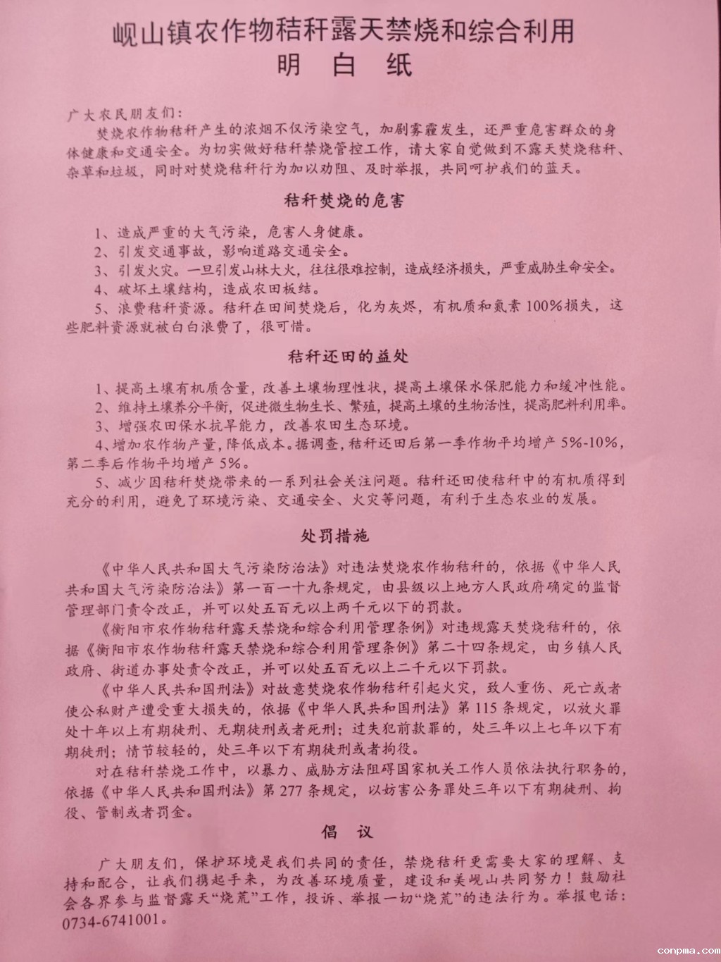 岘山镇农作物秸秆露天禁烧和综合利用明白纸
