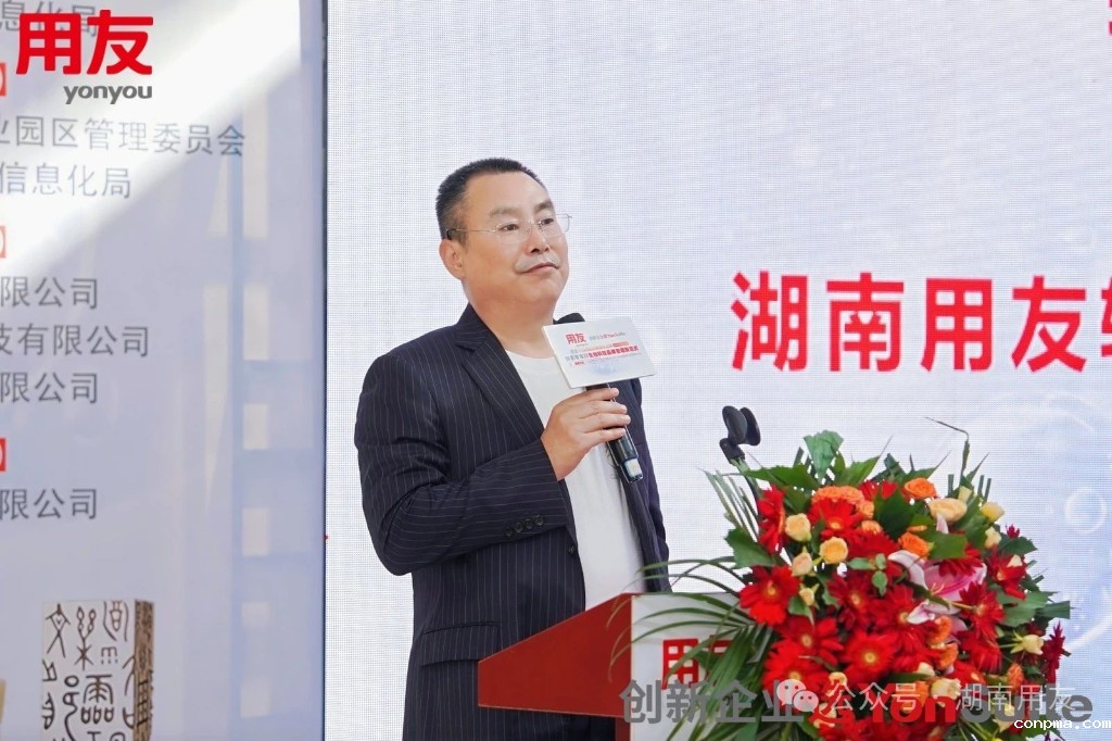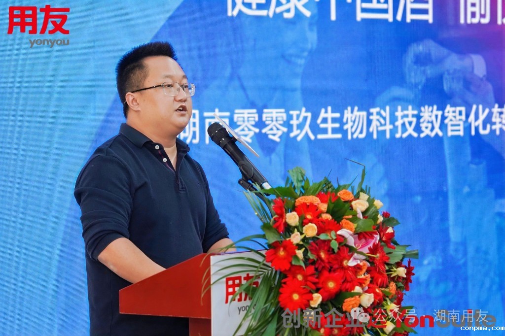 会议伊始,湖南用友软件有限公司总经理姚军致欢迎词。首先诚挚感谢零零玖生物科技对此次活动的大力支持,他谈到,近年来外部环境和消费模式的变化、大数据和人工智能的普及、国际化与产业颠覆式创新成为新常态,企业数智化已经是当今时代企业发展的必然趋势,数智化的助力可以使企业在降本增效、提升竞争力方面发挥重要作用。