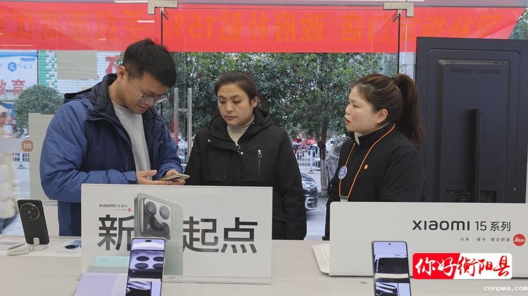 自1月20日湖南省商务厅《关于扩围实施湖南省数码产品购新补贴政策的公告》发布以来,我县各地手机消费市场愈发火爆。消费者在购买手机、平板、智能手表手环等3类数码产品时,单件销售价格不超过6000元按产品销售价格的15%给予补贴,每位消费者每类产品可补贴1件,每件补贴不超过500元。