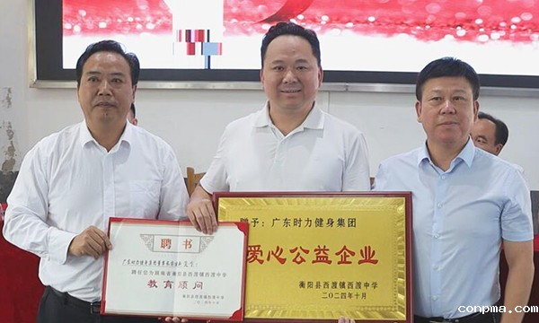 学校为蒋建新创办的广东时力健身集团送上“爱心公益企业”的荣誉牌照,并聘任蒋建新为西渡中学教育顾问。