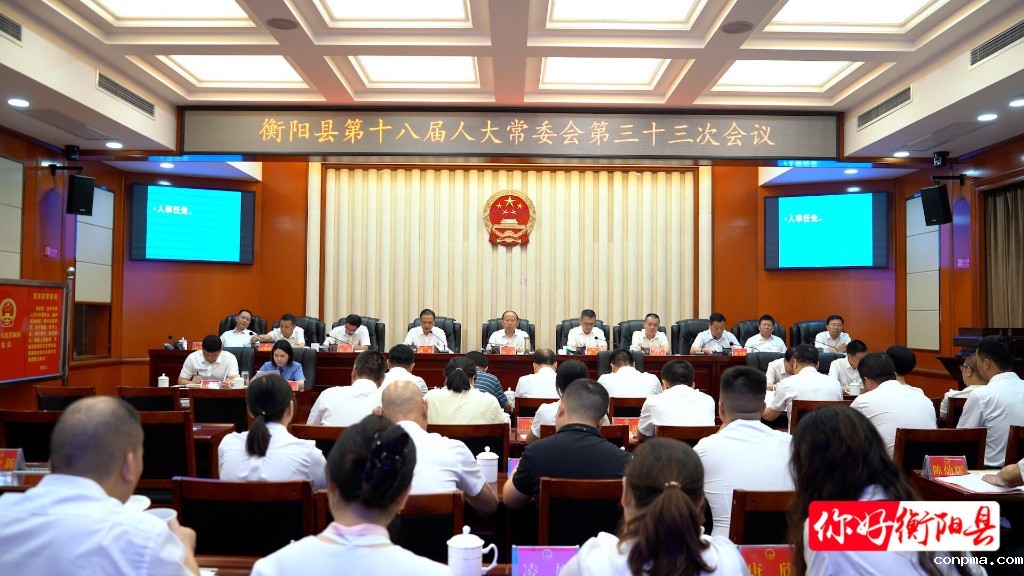 衡阳县融媒6月10日讯(记者:李洁霞 丁源)6月10日,县十八届人大常委会召开第三十三次会议,会议通过了相关人事任免议案,并对2024年度“一府两院”国家机关工作人员履职评议意见整改落实情况以及市人大代表述职情况开展测评。县委书记孙浩,县委副书记、县政府党组书记杨峰列席会议。县人大常委会主任叶强主持会议。