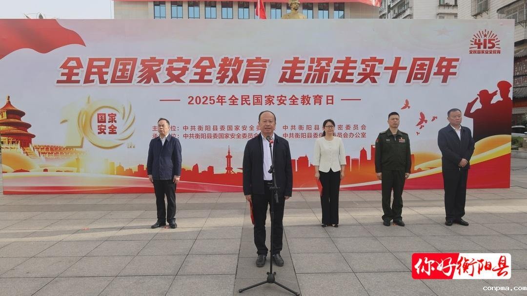 衡阳县融媒4月14日讯(记者:刘沛林 廖辉煌)4月14日上午,我县举行第十个“4·15”全民国家安全教育日宣传活动,现场向群众普及国家安全知识,进一步推动国家安全观念深入人心。县委书记、县长孙浩宣布活动启动,县委副书记、宣传部部长刘洋致辞。