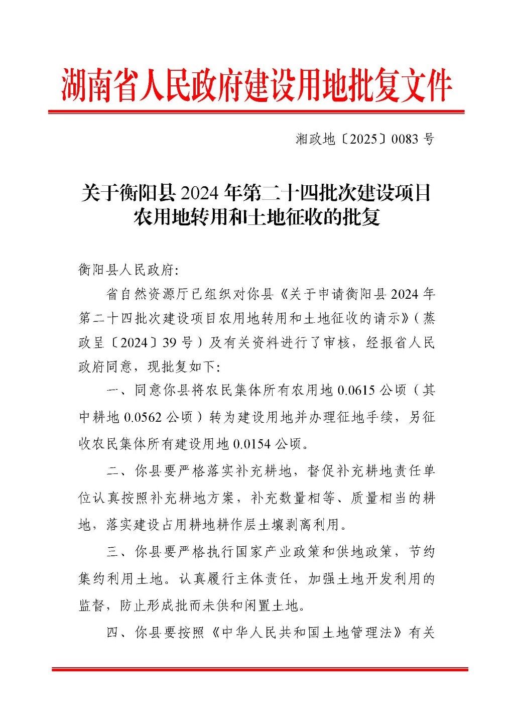 衡阳县2024年第二十四批次建设项目