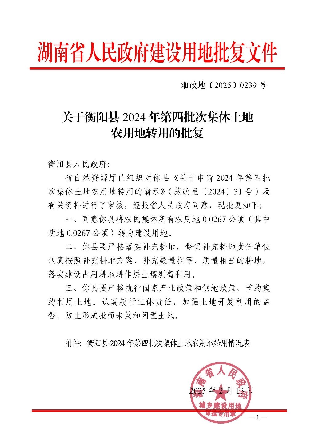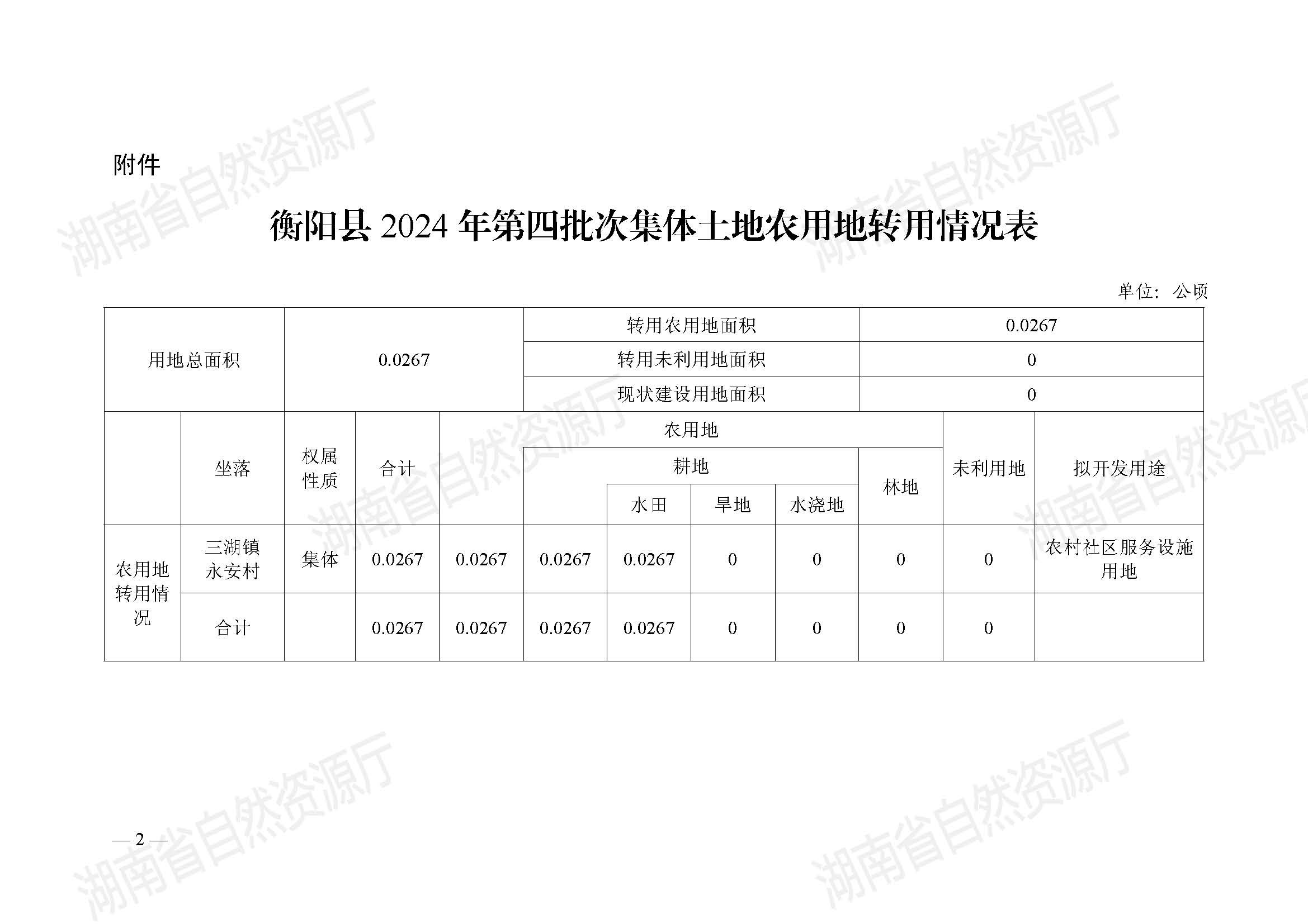 衡阳县2024年第四批次集体土地农用地转用