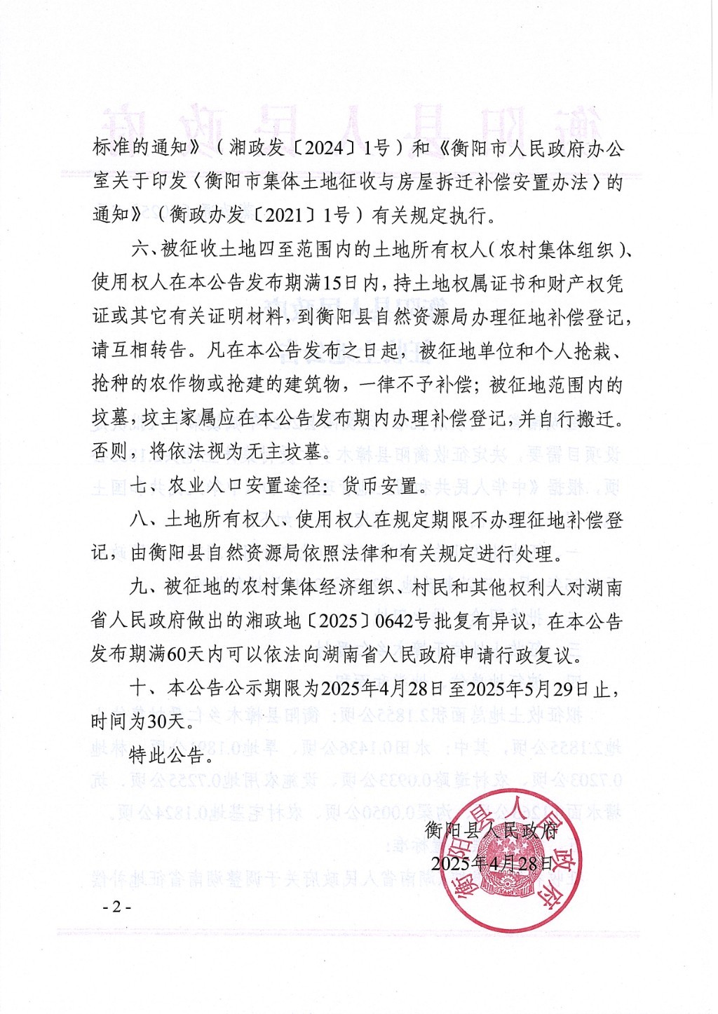 蒸政通【2025】7号征收土地公告